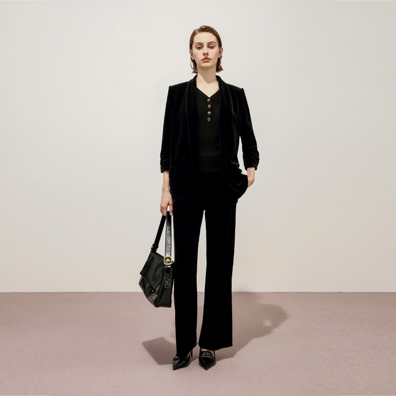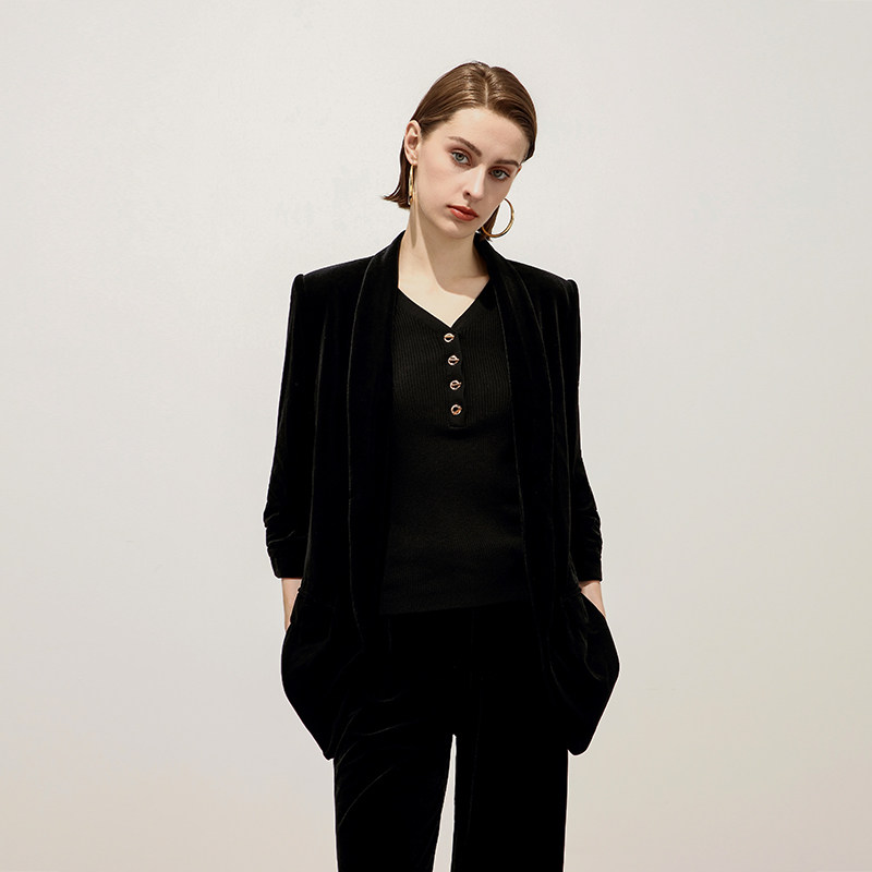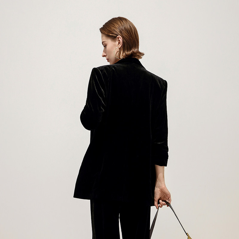 外套西服女款 Keywearcloud奇威秋季 西装 气质丝绒绅士中长款 新款