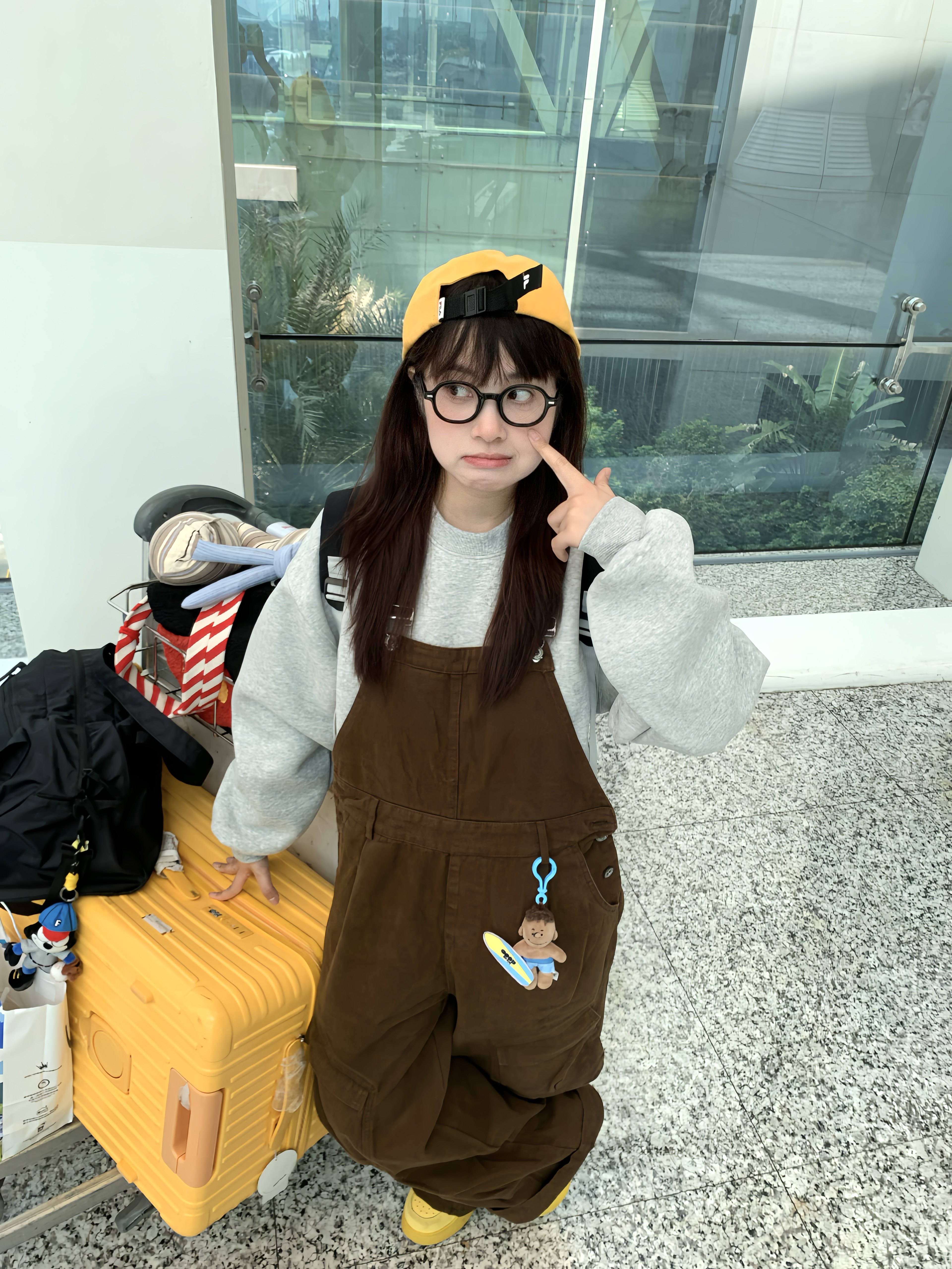 女秋冬美拉德灯芯绒长裤 甜美风减龄咖色背带裤 子 琥珀甜心 织物猪