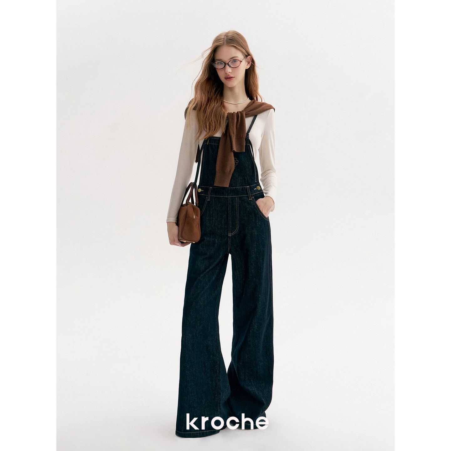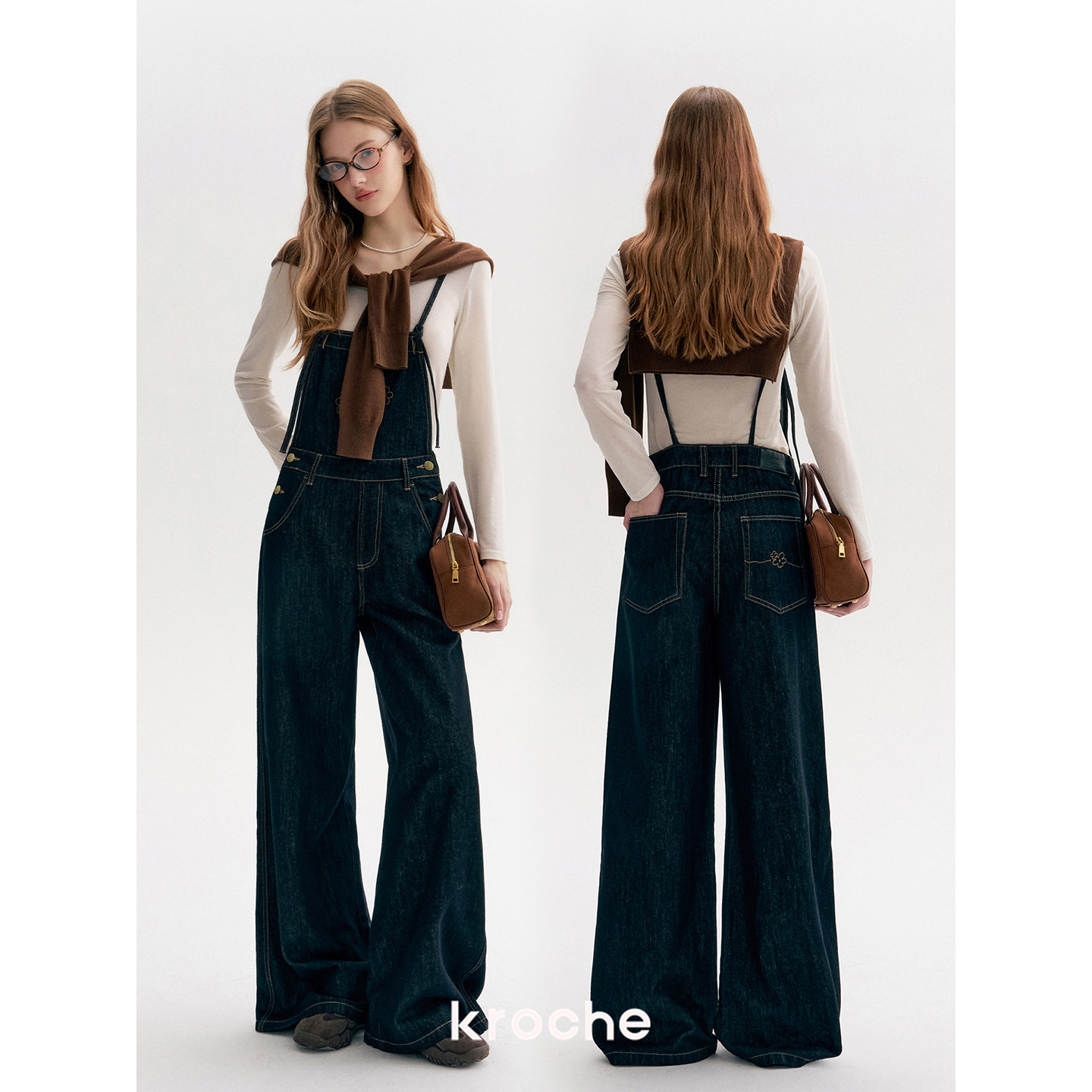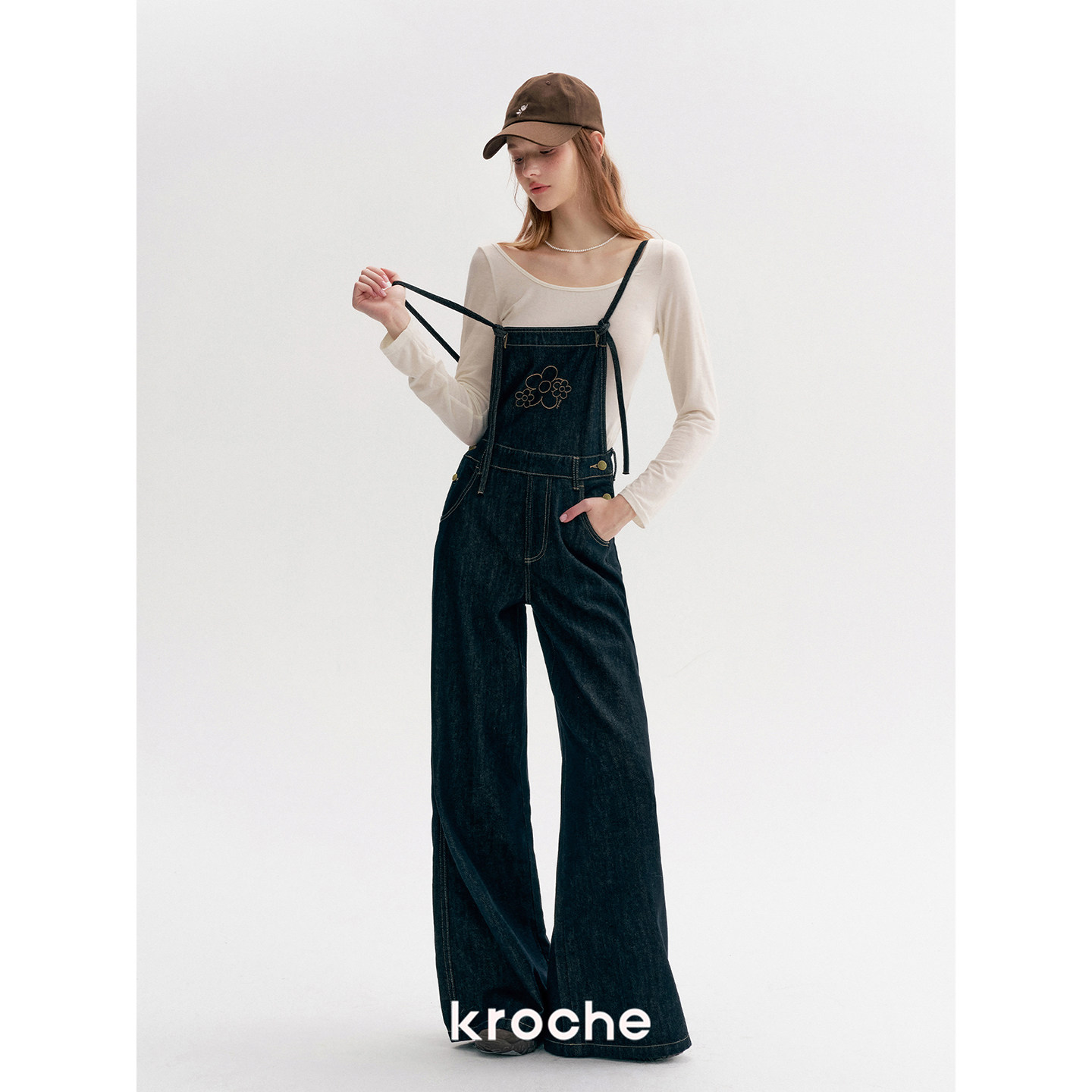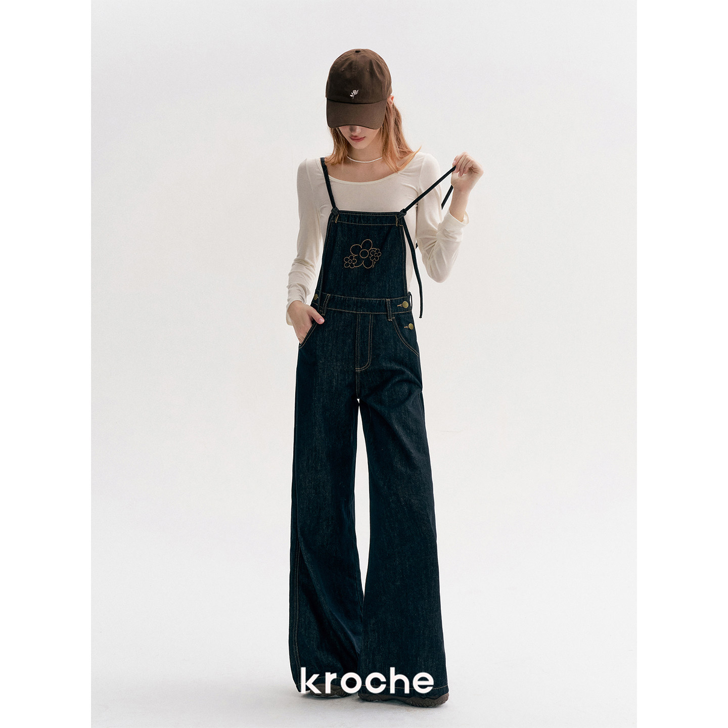 水洗宽松直筒阔腿背带裤 Kroche 撞色五瓣花米粒绣 慵懒休闲 25aw