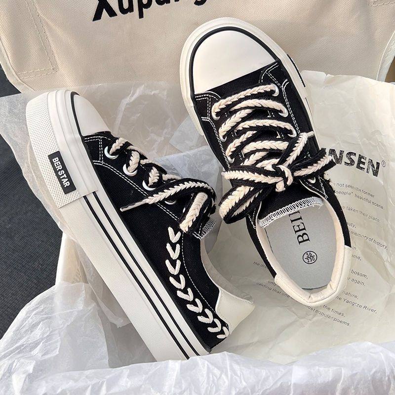 黑色增高春季 板鞋 帆布鞋 百搭女鞋 女2024今年流行爆款 七七主人家