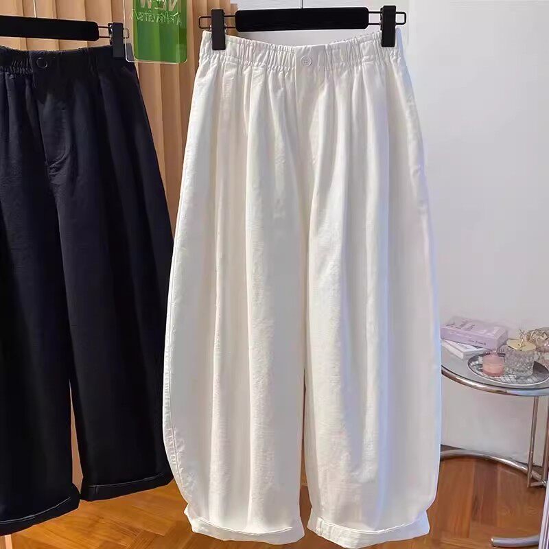 高腰遮肉显瘦宽松八分弯刀裤 新款 女夏季 xxs小个子七分黑色气球裤