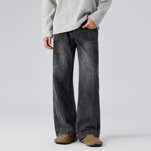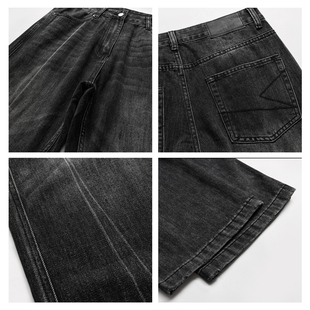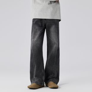 宽松休闲阔腿裤 爱情魔鬼鱼 新款 女2025冬季 黑灰色高腰复古牛仔裤