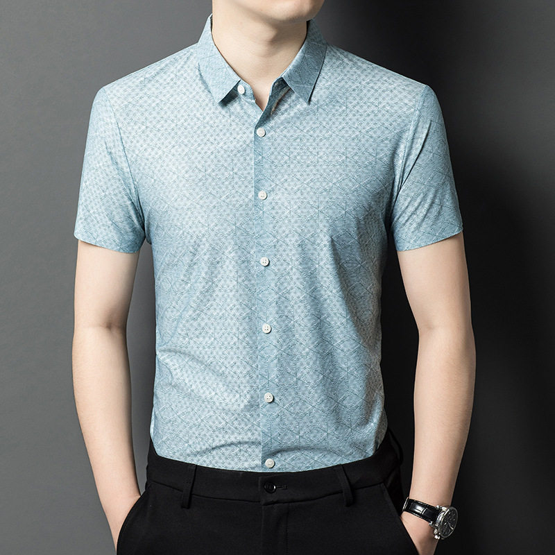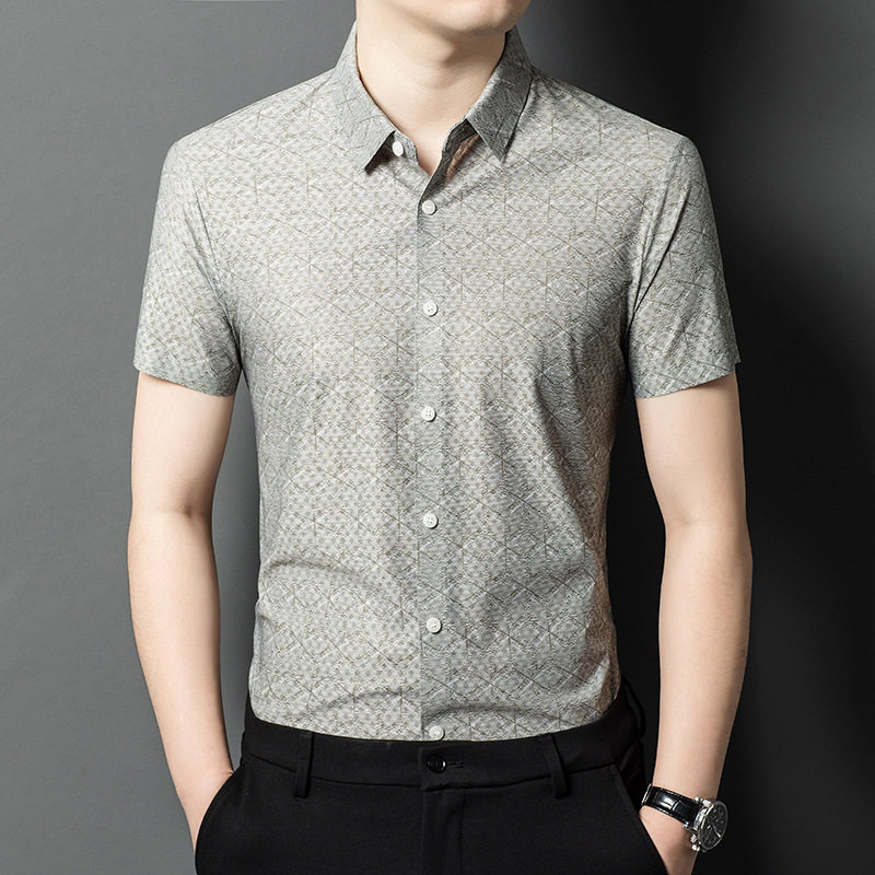 衬衫 无痕休闲免烫格子开衫 男2024夏季 韩版 衬衣 新款 简约百搭短袖