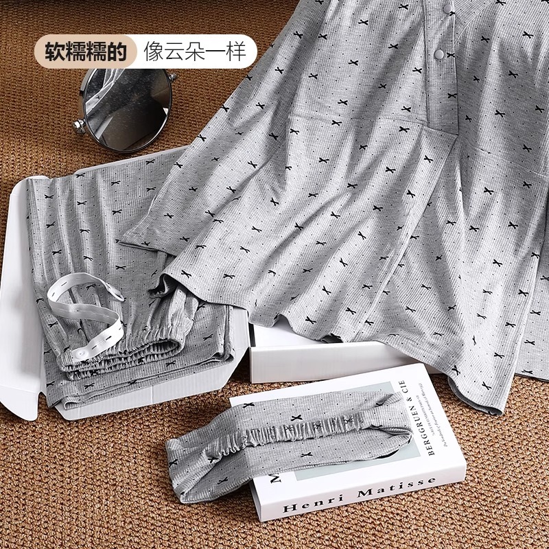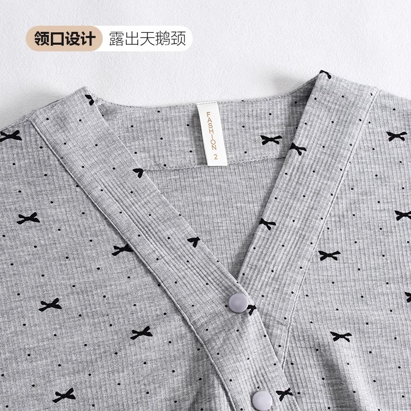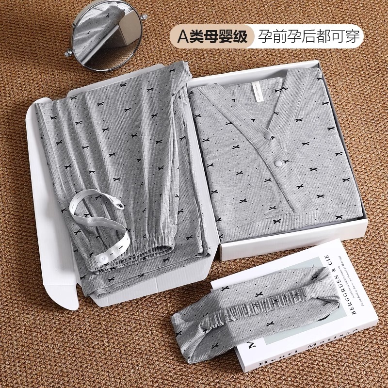 孕妇哺乳喂奶睡衣套装 法国Uamtor凉感莫代尔带胸垫月子服秋季 薄款