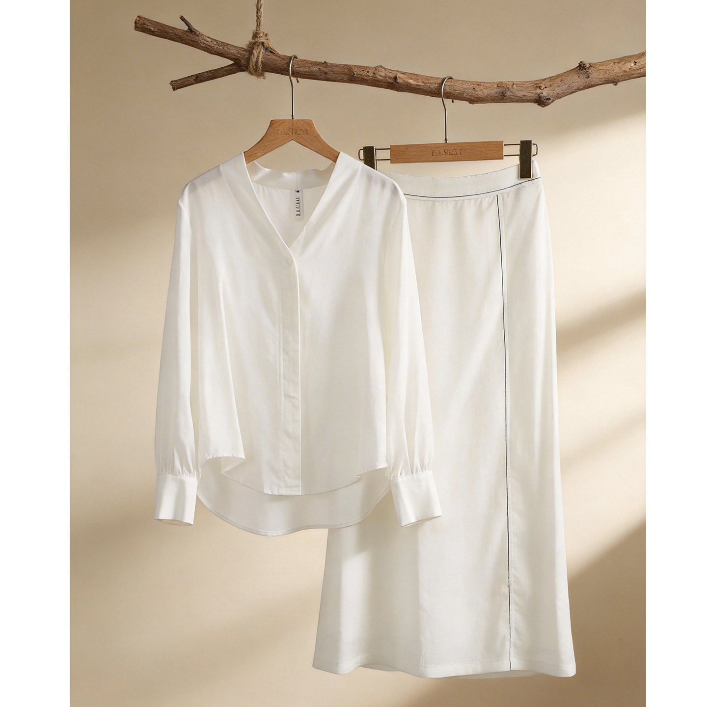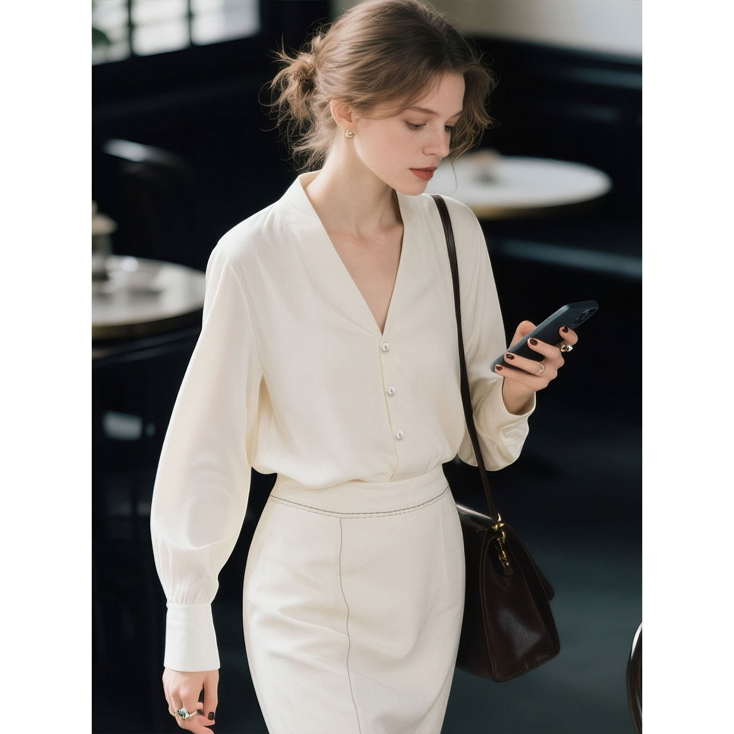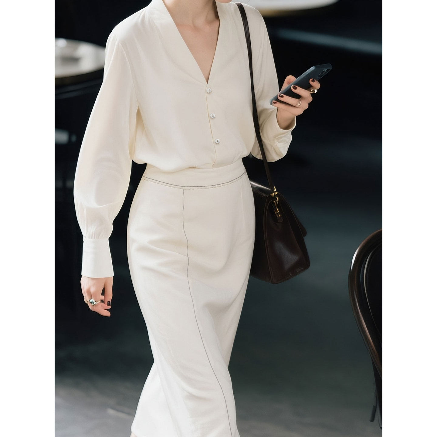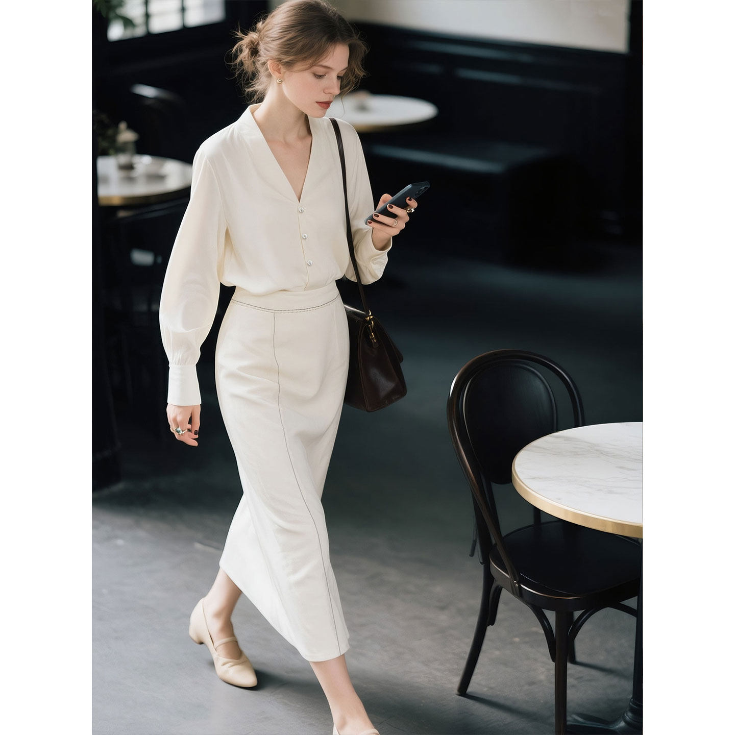 莱赛尔天丝衬衫 新款 半身裙两件套 女2026年春季 白色通勤职业套装