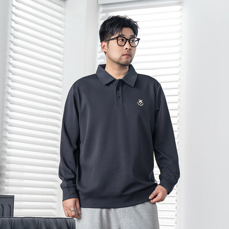 2025冬季 黑劲大码 polo衫 长袖 胖子加肥加大宽松休闲商务上衣 男装