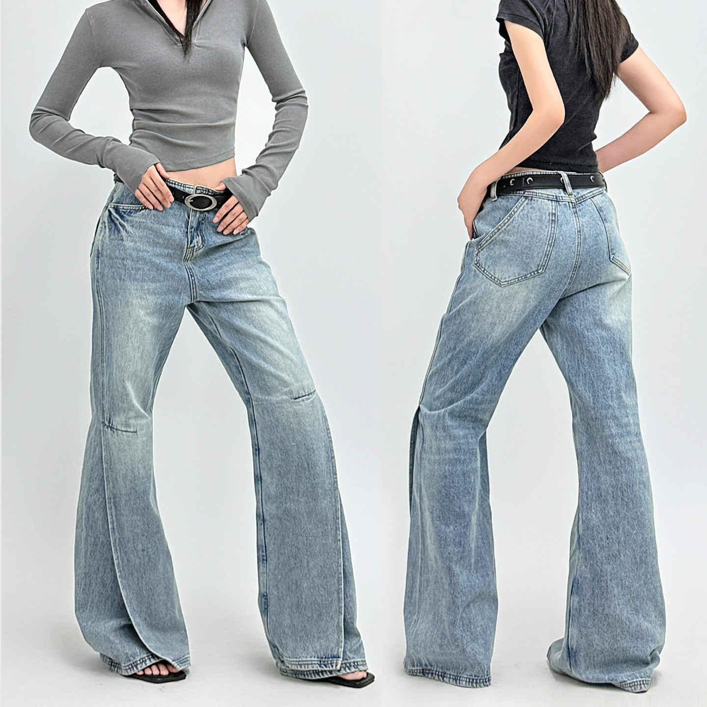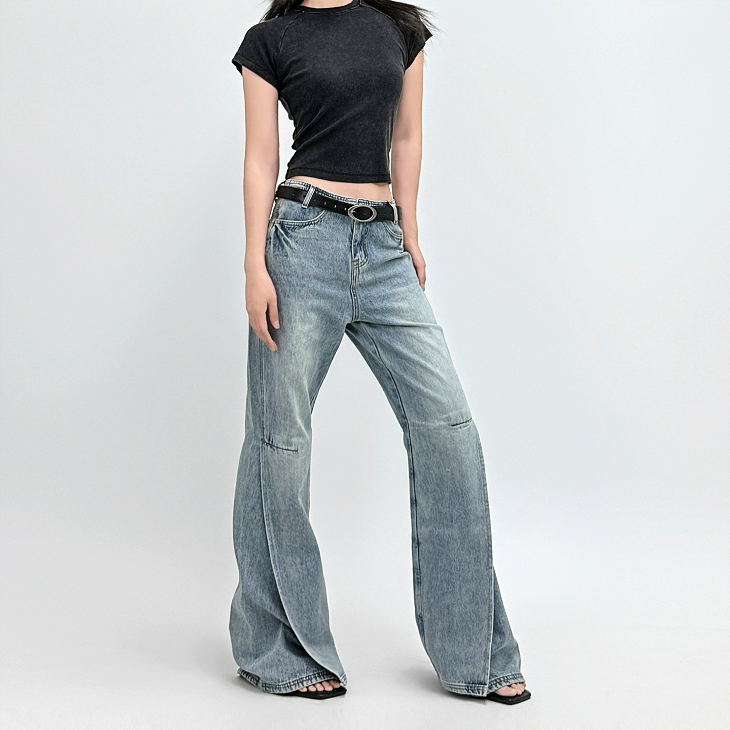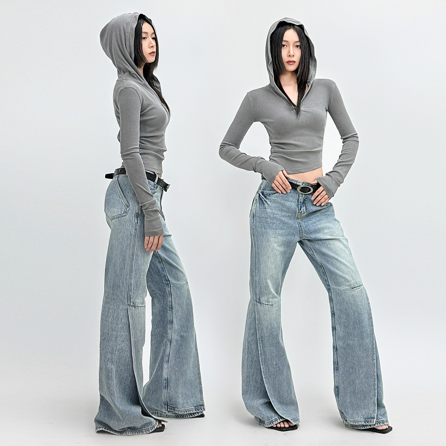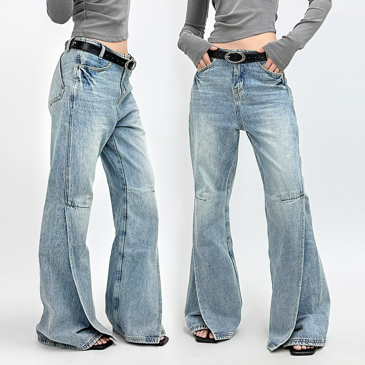 女小众设计感宽松显瘦拖地裤 复古辣妹风开叉微喇牛仔裤 美式 SUN90