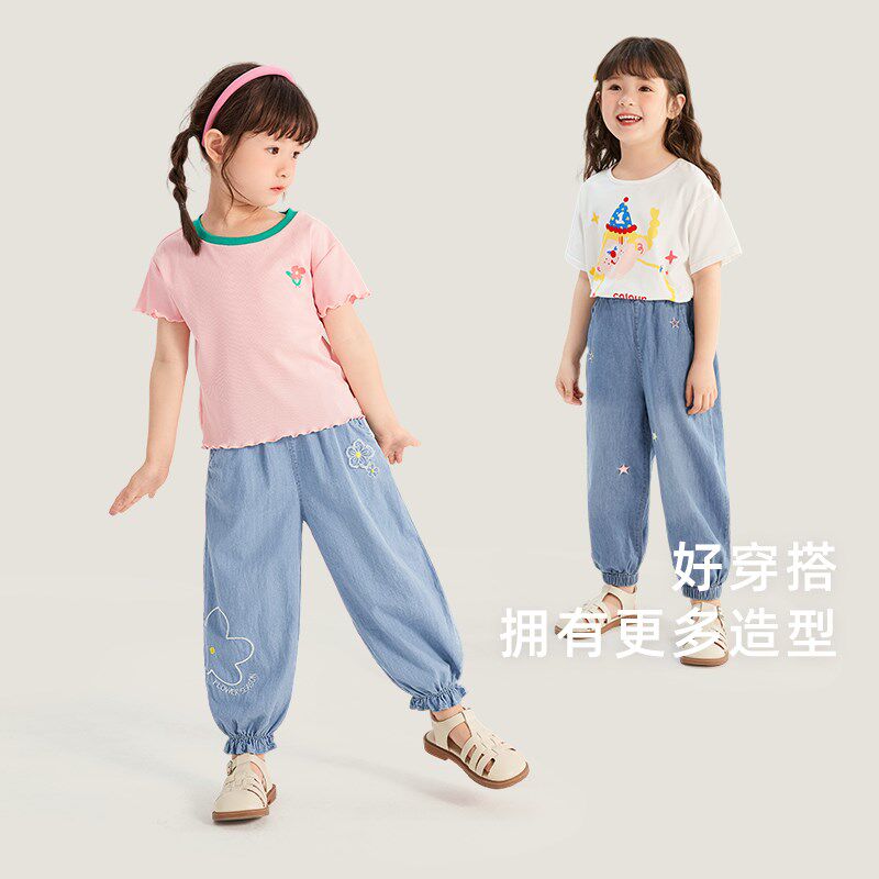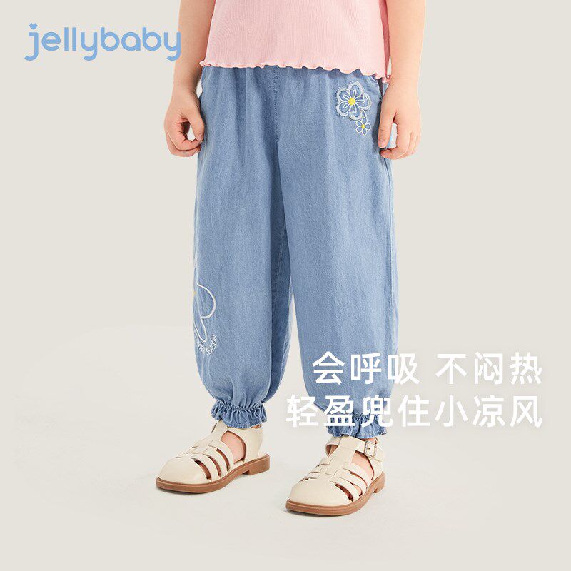 长裤 女宝宝夏J装 新款 女童牛仔裤 儿童防蚊裤 薄款 纯棉裤 中小童夏季