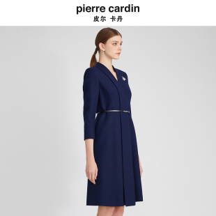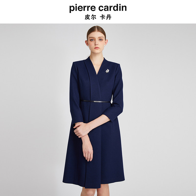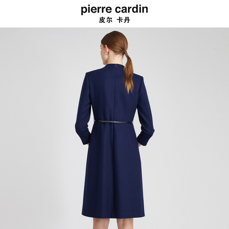 皮尔卡丹女装 加厚羊毛裙A字裙V领收腰连衣裙P2410E2880N0 秋冬新款