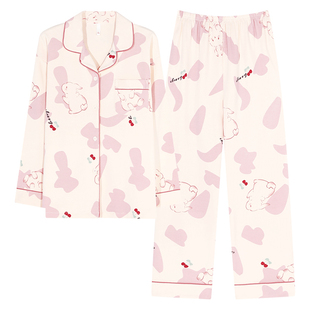 全棉舒适家居服套装 春秋季 甜美可爱开衫 睡衣休闲宽松长袖 女士新款