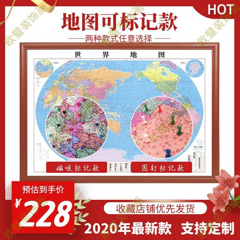 中国世界挂图墙贴挂画20u20年新版 饰画 磁吸可标记超大办公室装
