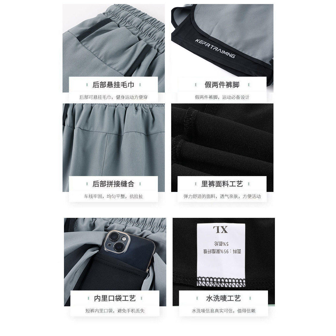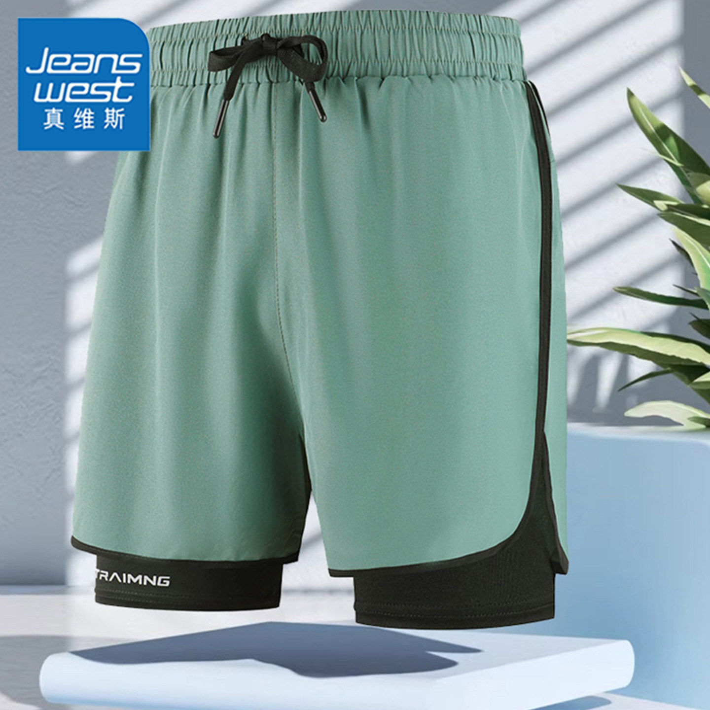 男女训练三分裤 骑行健身透气宽松跑步裤 夏季 真维斯双层运动短裤