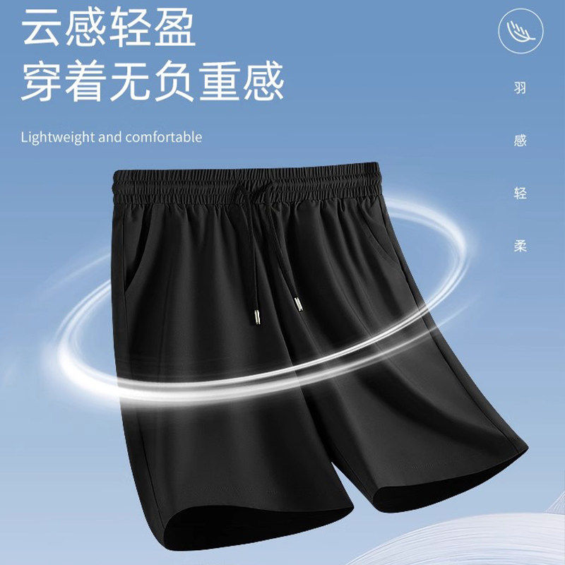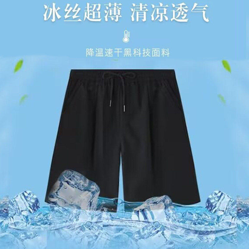 薄款 胖子男士 宽松运动休闲短裤 冰丝男黑色五分裤 子 短裤 五分裤 夏季
