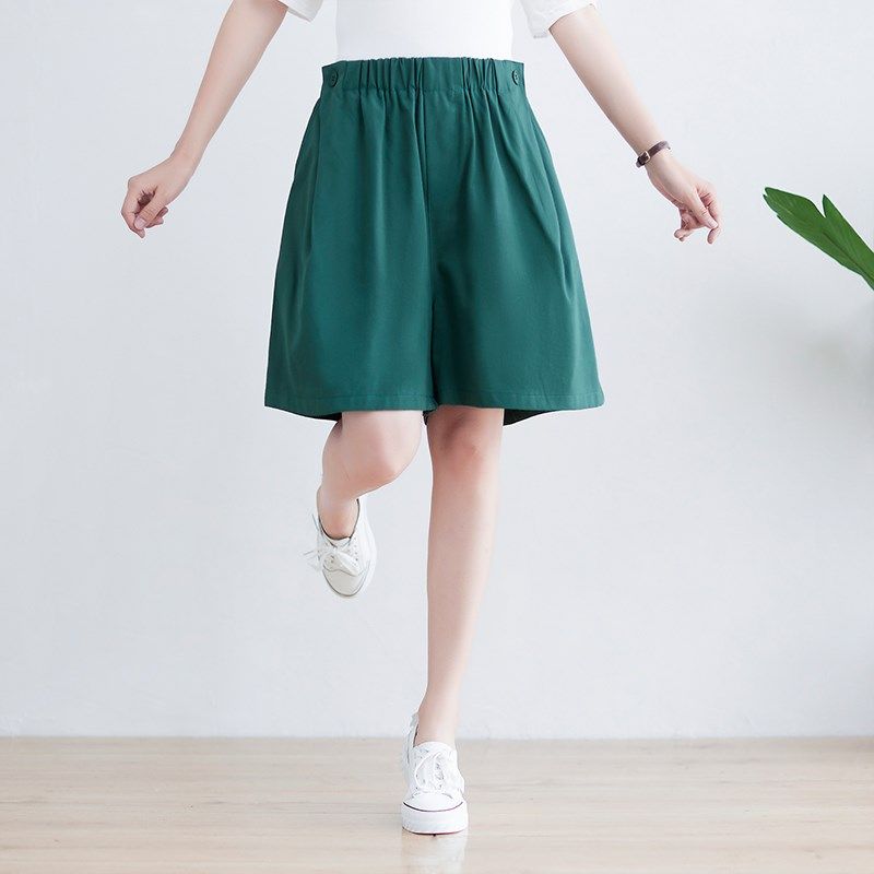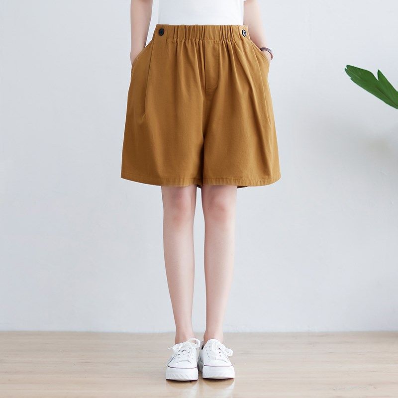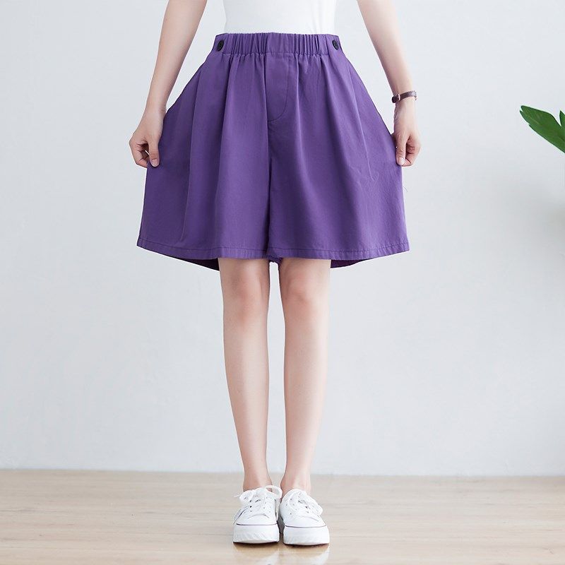 夏装 宽松显瘦阔腿短裤 胖mm文艺松紧腰休闲裙裤 女装 大码 棉麻五分裤