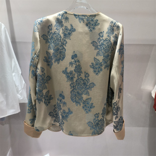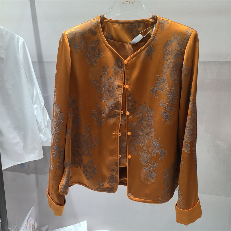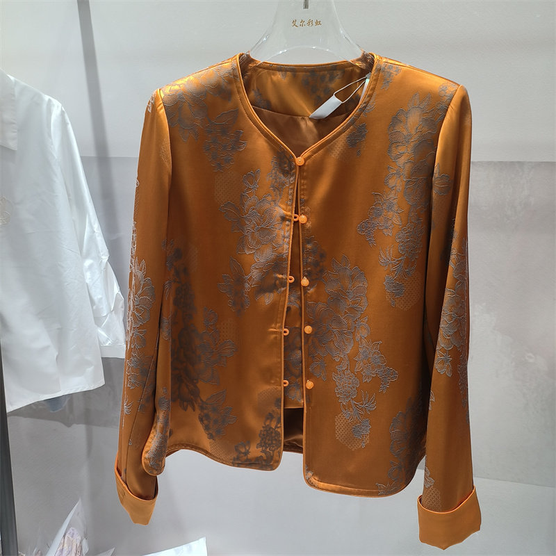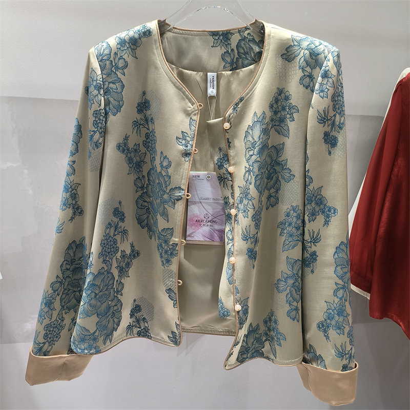 显瘦气质高级感外套妈妈女装 新中式 圆领开衫 女长袖 国风印花衬衫