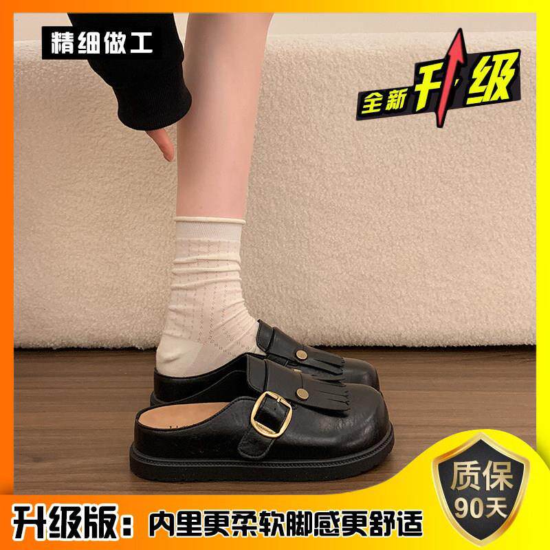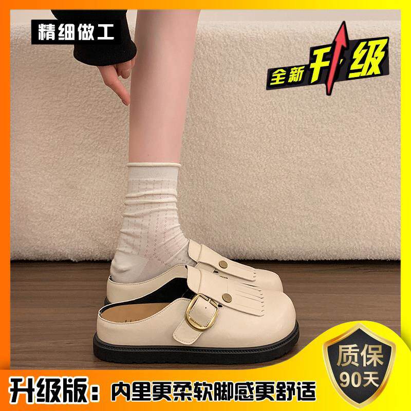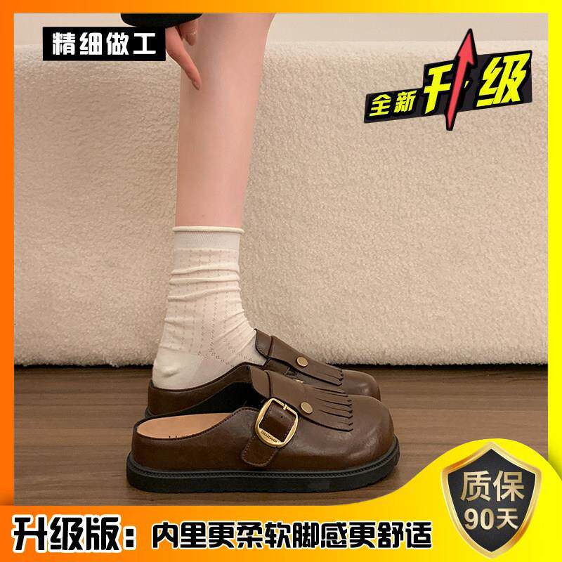 春夏一脚蹬拖鞋 包头半拖2026新款 外0315r 女款 厚底复古流苏勃肯鞋