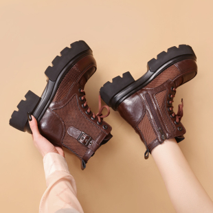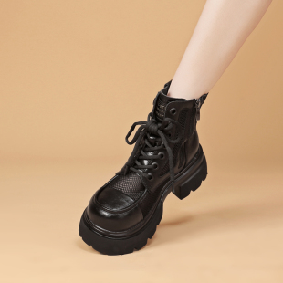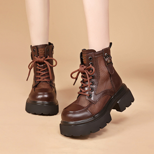 网纱镂空马丁靴女休闲透气粗跟增高6cm显瘦短靴 时尚 2026春季 新款