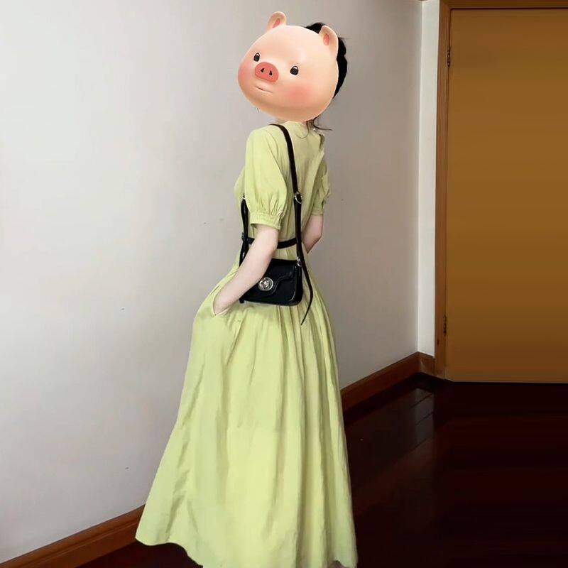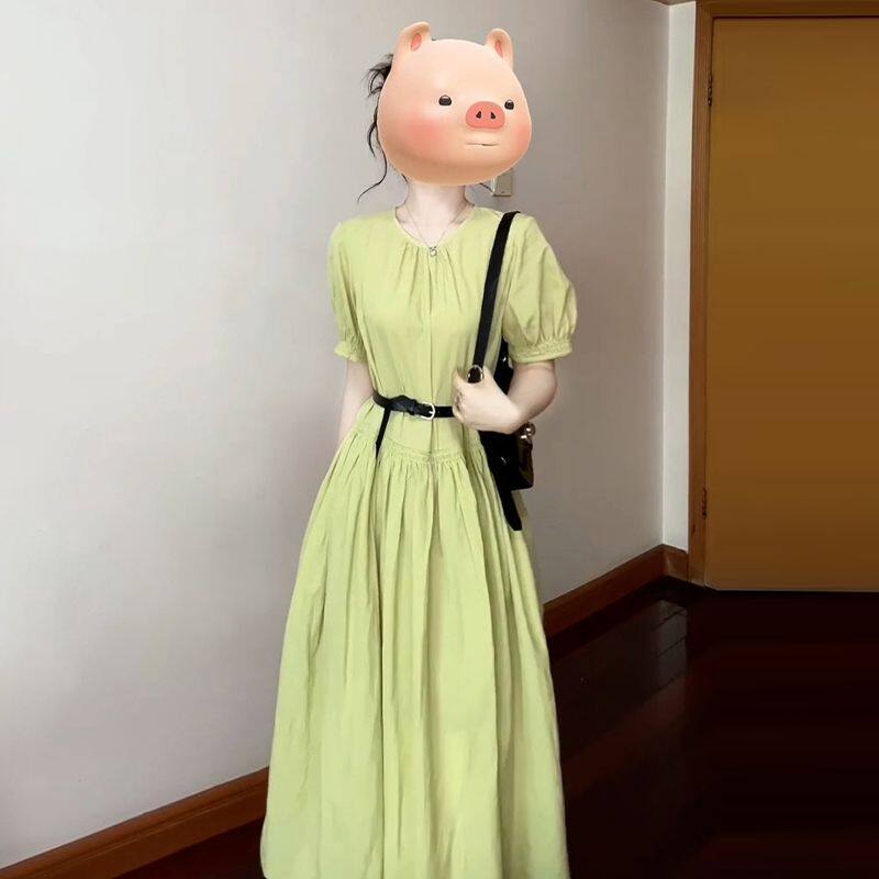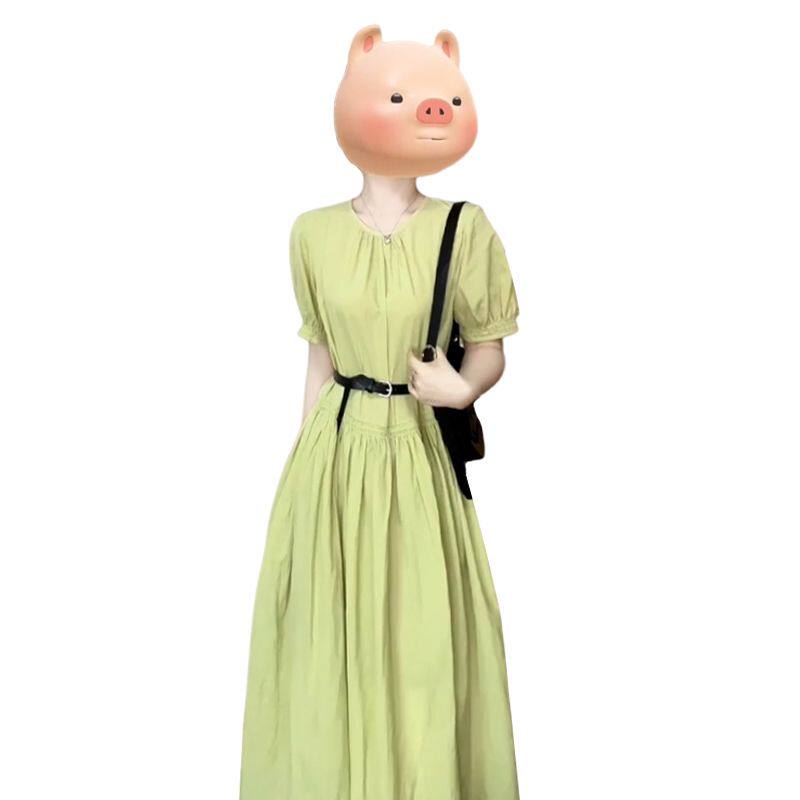 2026新款 连衣裙子女夏季 气质绝美收腰长裙 学院风绿色衬衫 法式