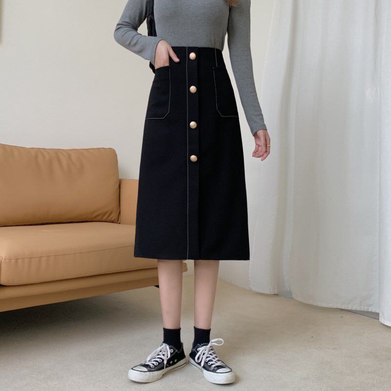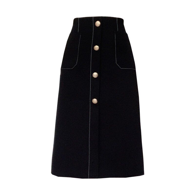 胖mm秋冬中长裙单排扣开叉半身裙大码 高腰不显胯a字裙一步包臀裙
