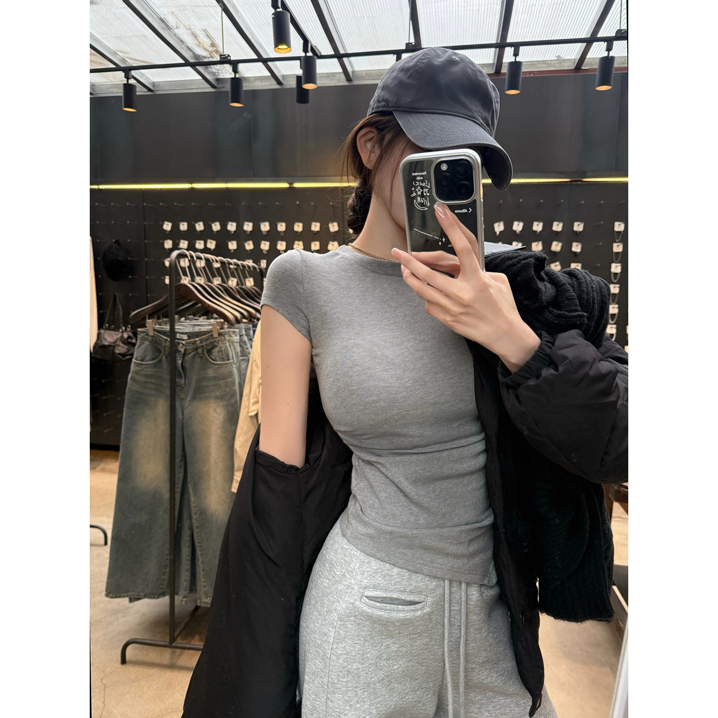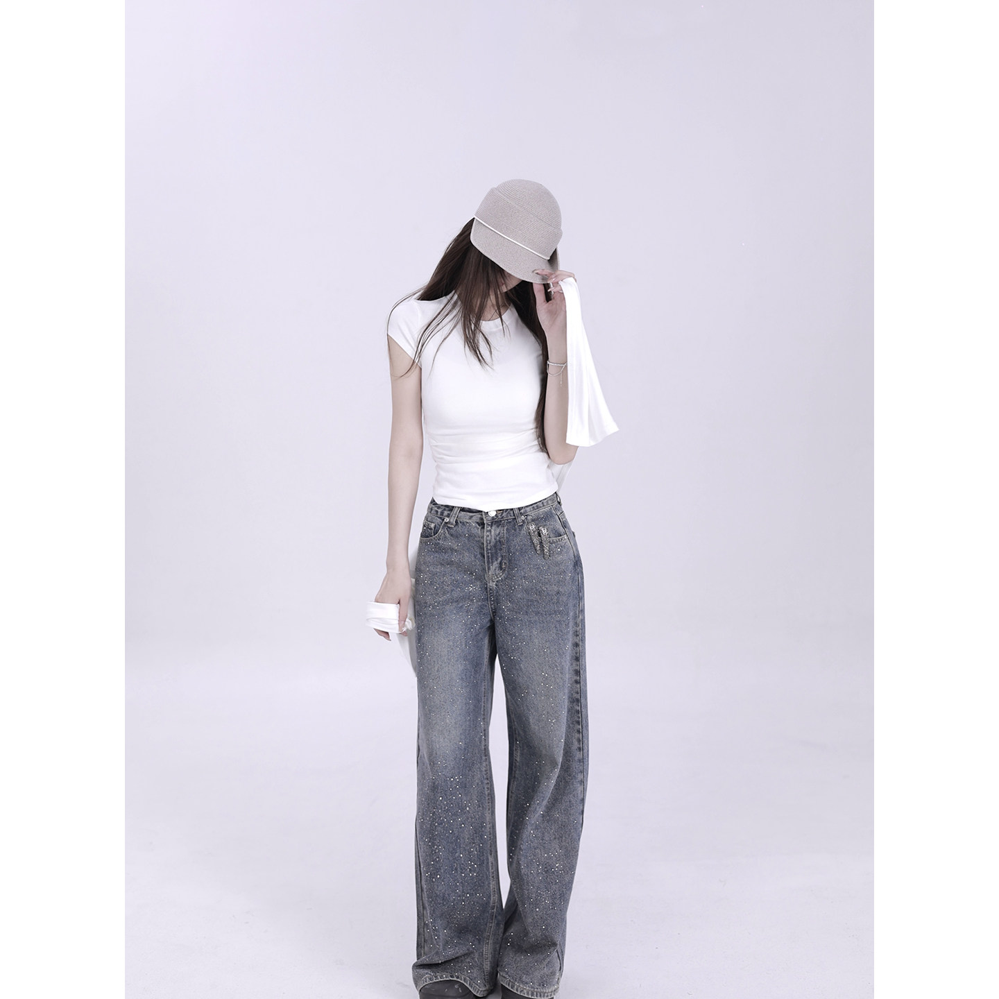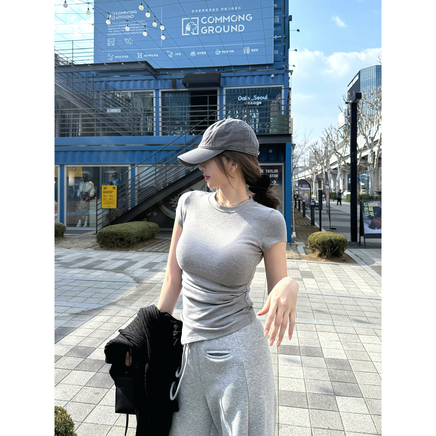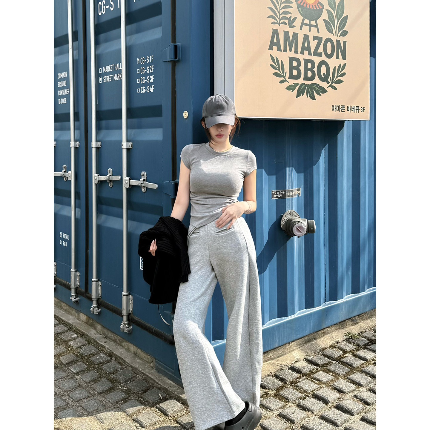 新品 套装 柔粘 韩系两件套 T恤阔腿裤 灰色短袖 ROUNIAN 开售