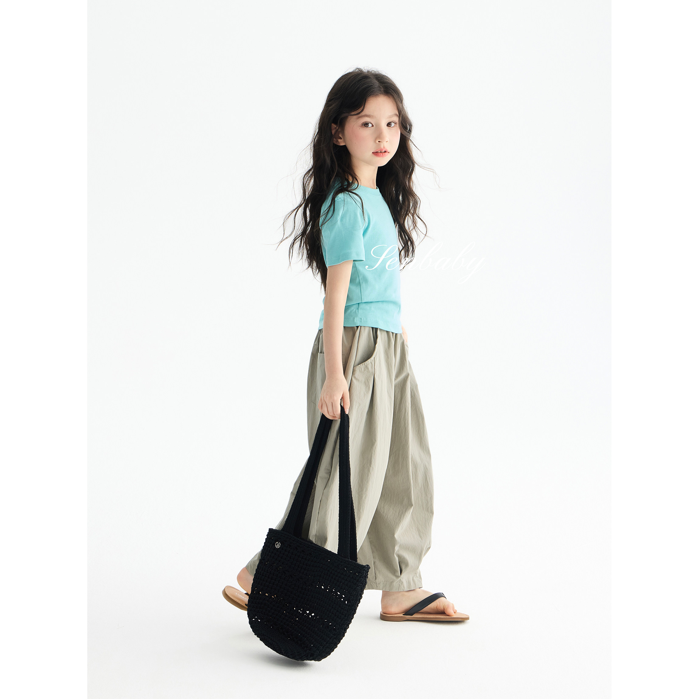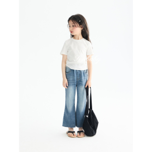 基础款 儿童蓝绿色打底上衣韩版 小白T 女童纯色T恤夏季 senbaby童装