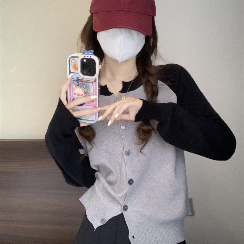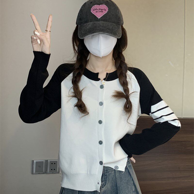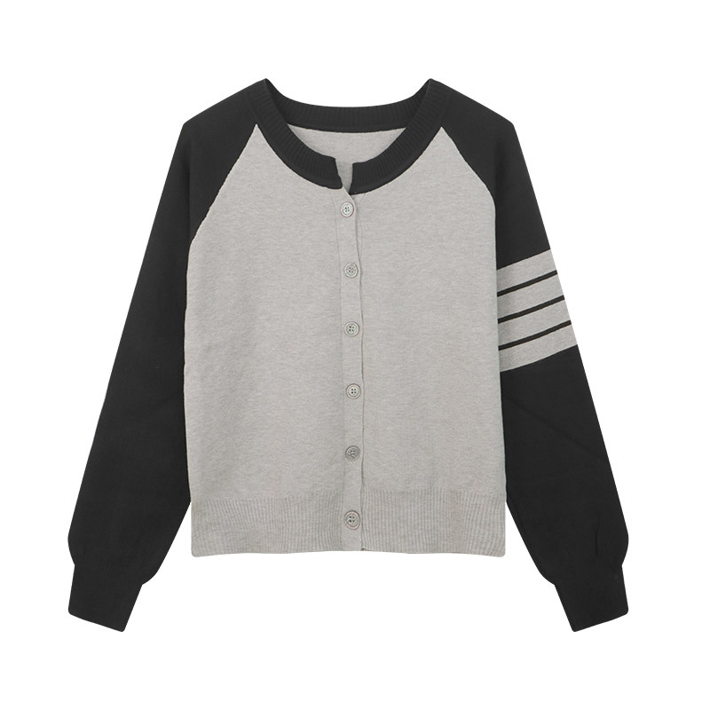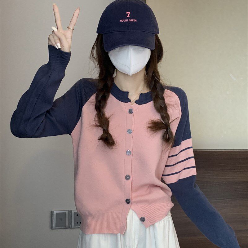 速发休闲小众子计感撞色针织衫 毛衣外套早个设上衣 小秋202新款