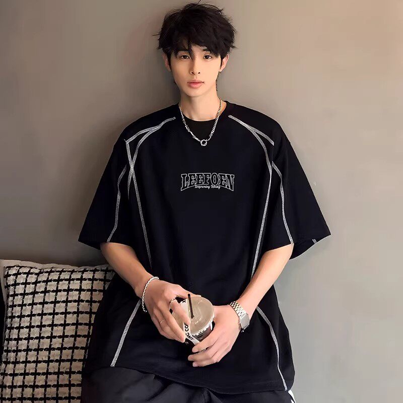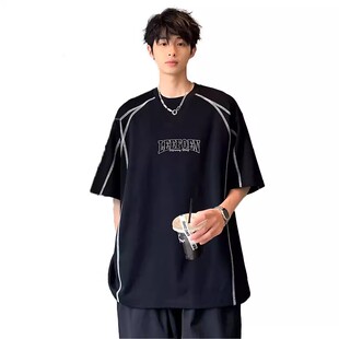衣服宽松潮流百搭半袖 潮牌美式 体恤黑色白色 t恤男夏季 重磅短袖