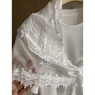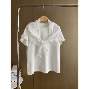 百搭小个子休闲上衣 新款 高端韩系白色蕾丝披肩短袖 T恤女2026夏季