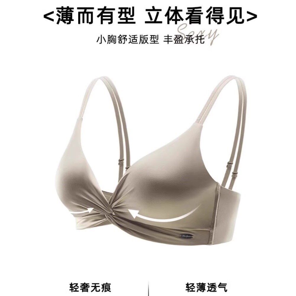 GULIBERRY三角杯内衣女聚拢上托显大收副乳调整型薄款 文胸套装
