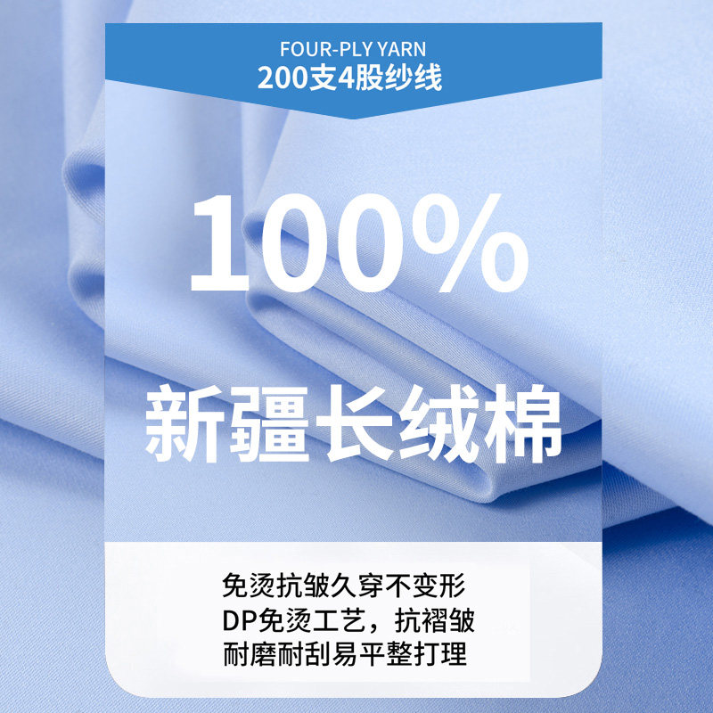 长袖 太子龙短袖 蓝色衬衫 男士 商务衬衣 新款 200支4股纯棉DP免烫