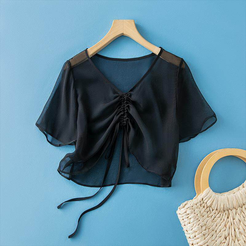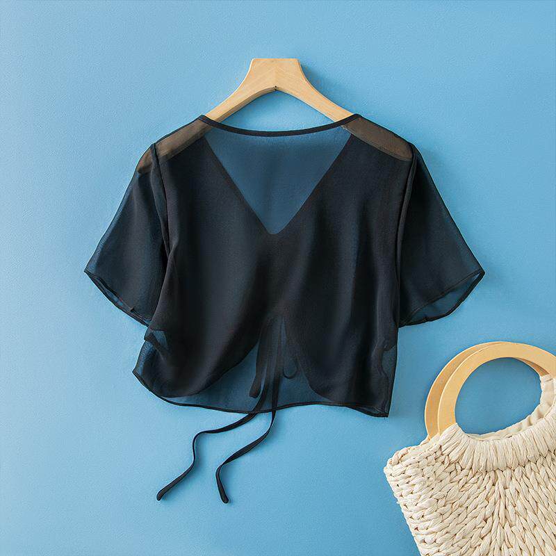 纯色轻薄透气桑蚕丝小坎肩女练功外搭 舞蹈服披肩真丝罩衫 新款 夏季