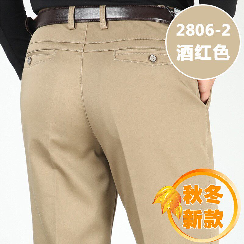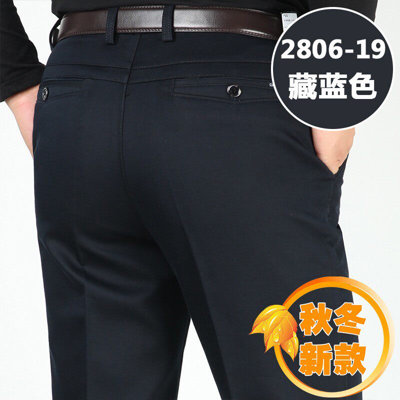 中老年爸爸高腰宽松西裤 高档品质厚款 纯棉休闲裤 秋冬中年男式 男裤