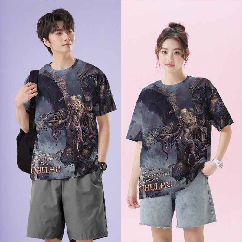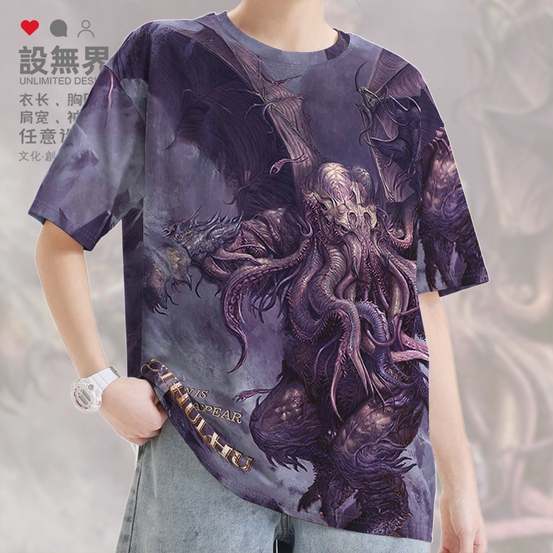 欧美神话克苏鲁沉睡之神速干T恤男女复古潮牌满印体恤0015设 无界