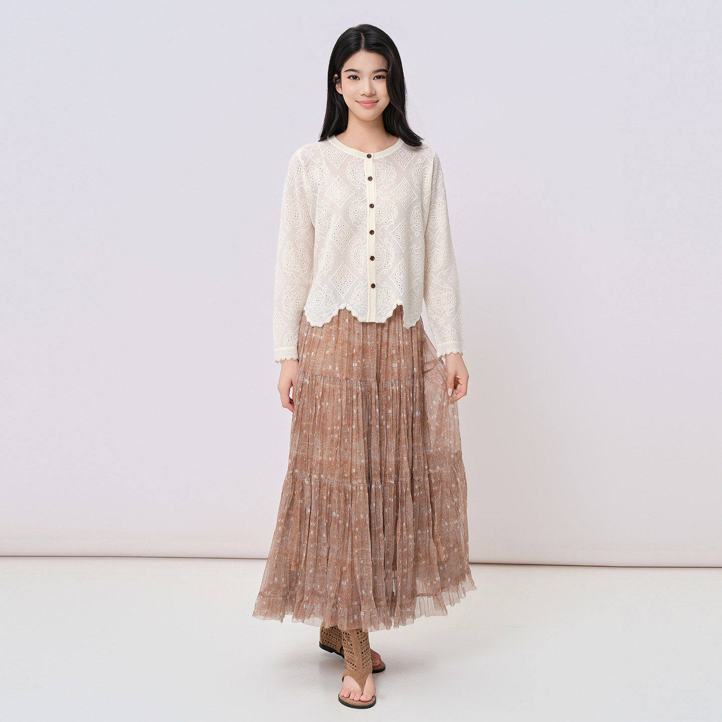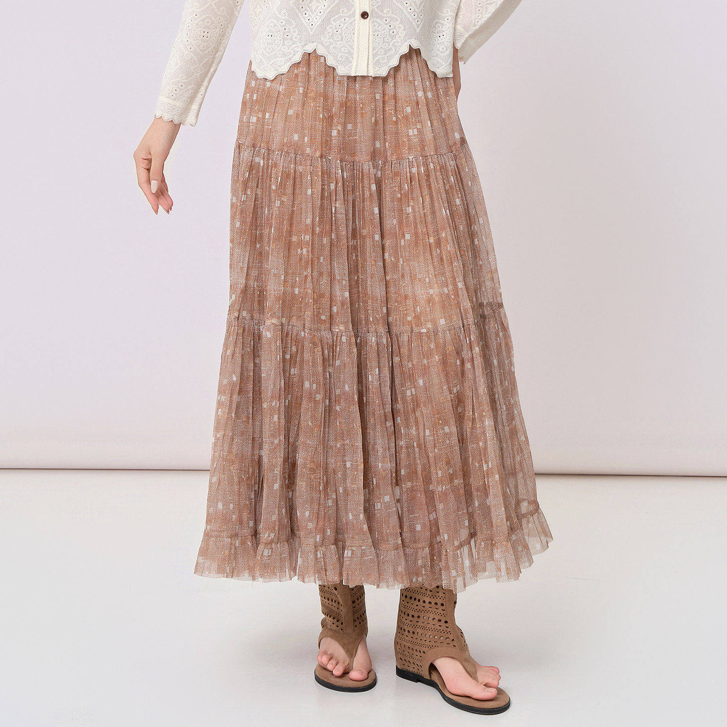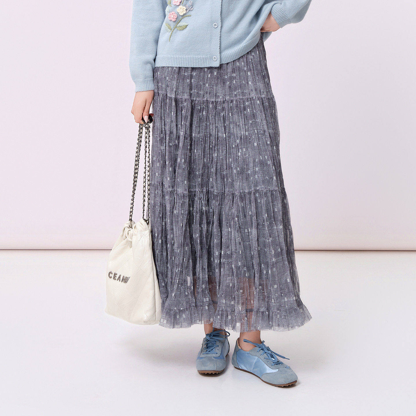 阅涵2026夏季 刺绣大摆长裙女波西米亚田园风印花蛋糕半身裙 款
