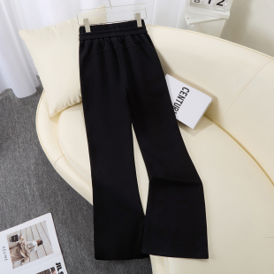 高腰弹力运动休闲裤 女2026夏季 胖mm200斤空气棉微喇裤 高腰薄款