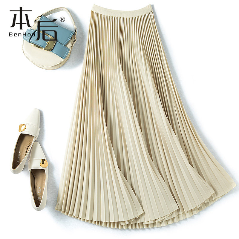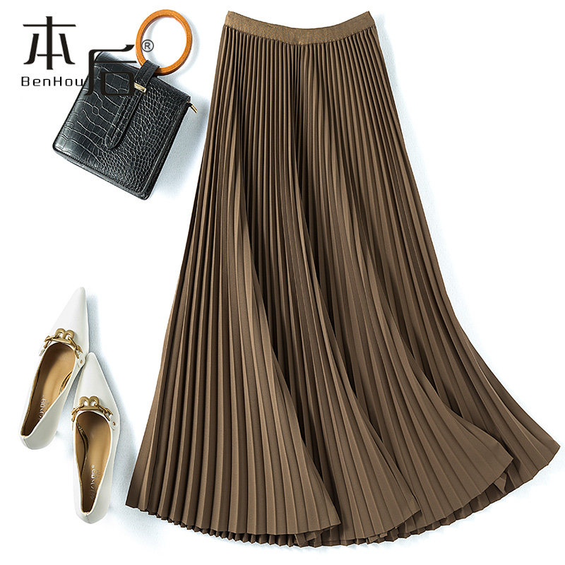 小个子设计感a字洋气 2021新款 律动之美 咖色百褶半身裙秋冬中长款