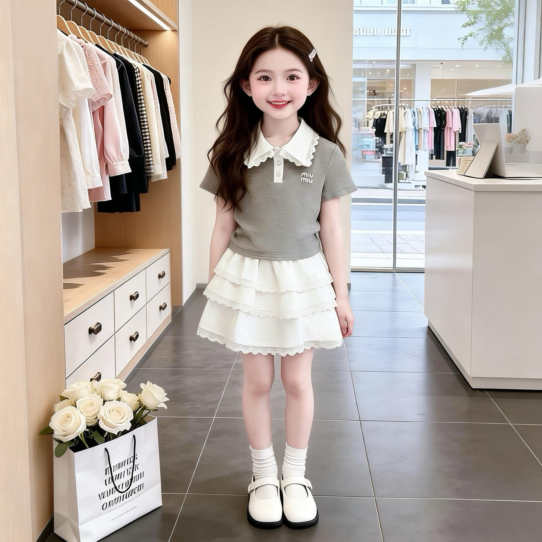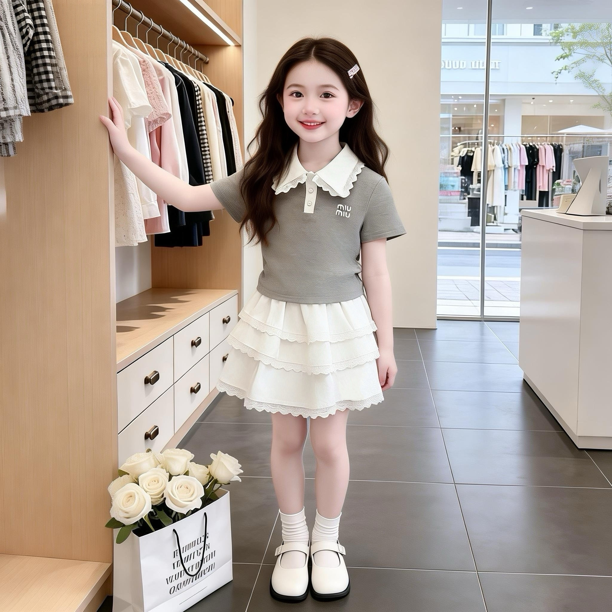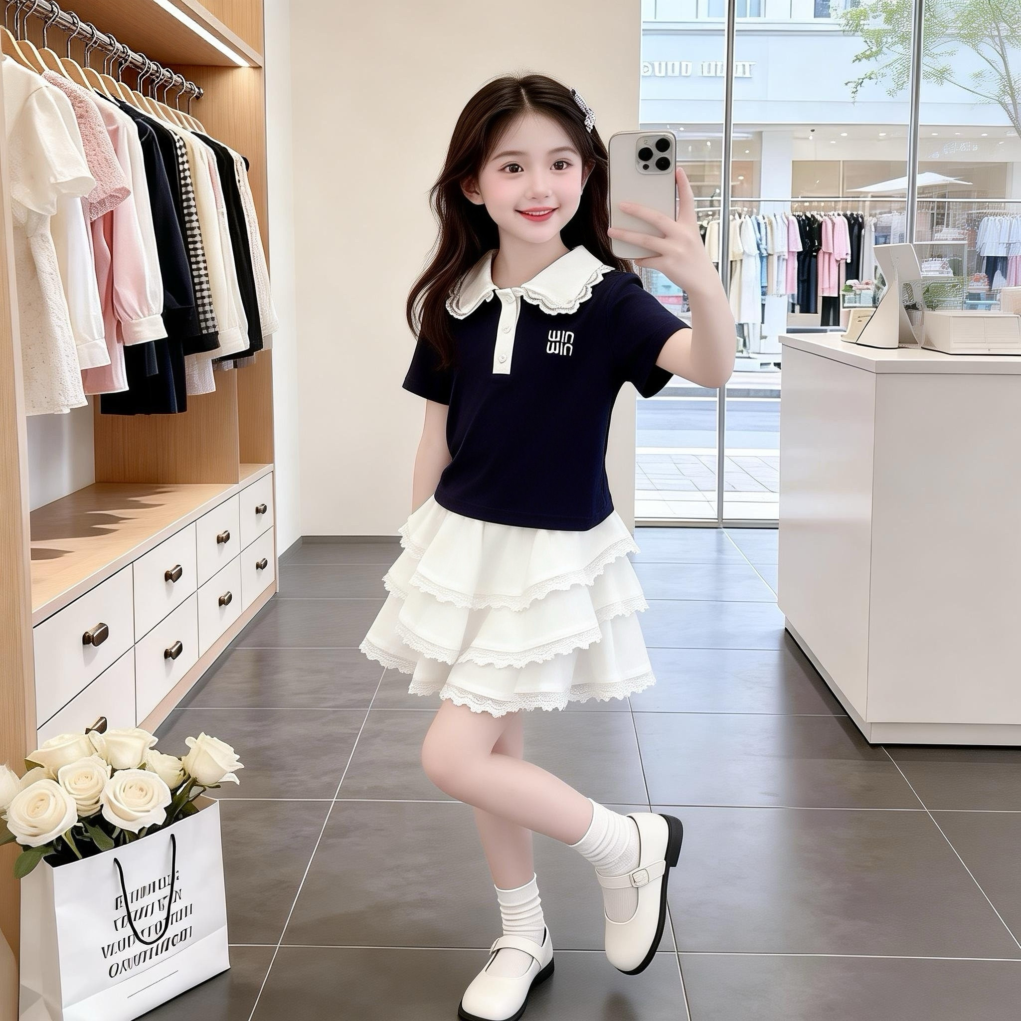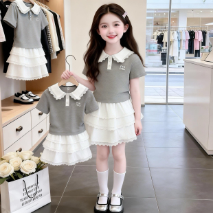 2026年新款 套装 夏装 拼接花边Polo衫 潮 洋气时髦中大童韩版 女童套装