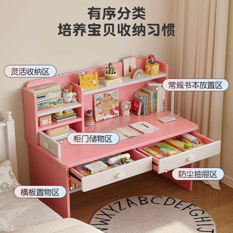 木儿童书桌书架一字桌子学习小学生家用卧AA33N85室写桌体桌椅套