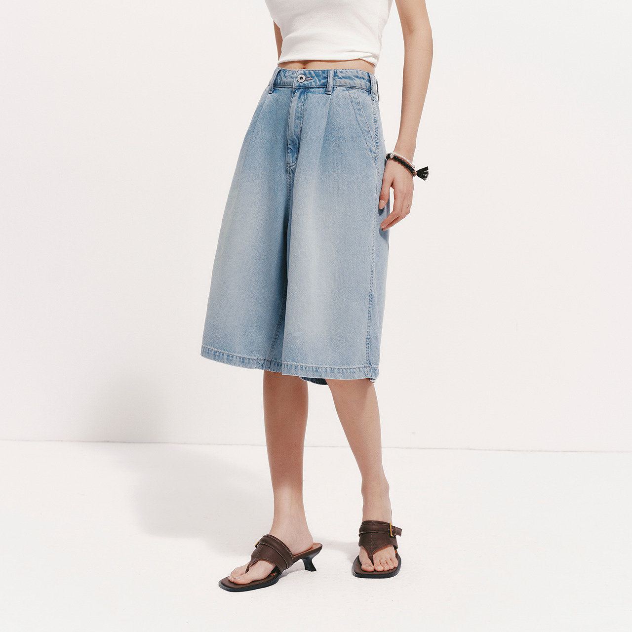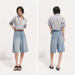 潮流女生遮肉五分裤 森柔 凉感宽松打褶2026新款 女夏季 森马牛仔裤