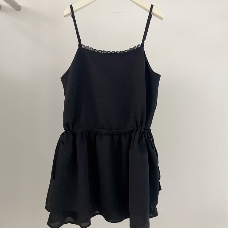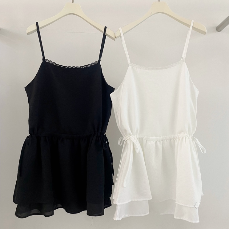 新款 SERIN春季 韩系抽绳收腰双层荷叶边吊带连衣裙 代购 韩国正品