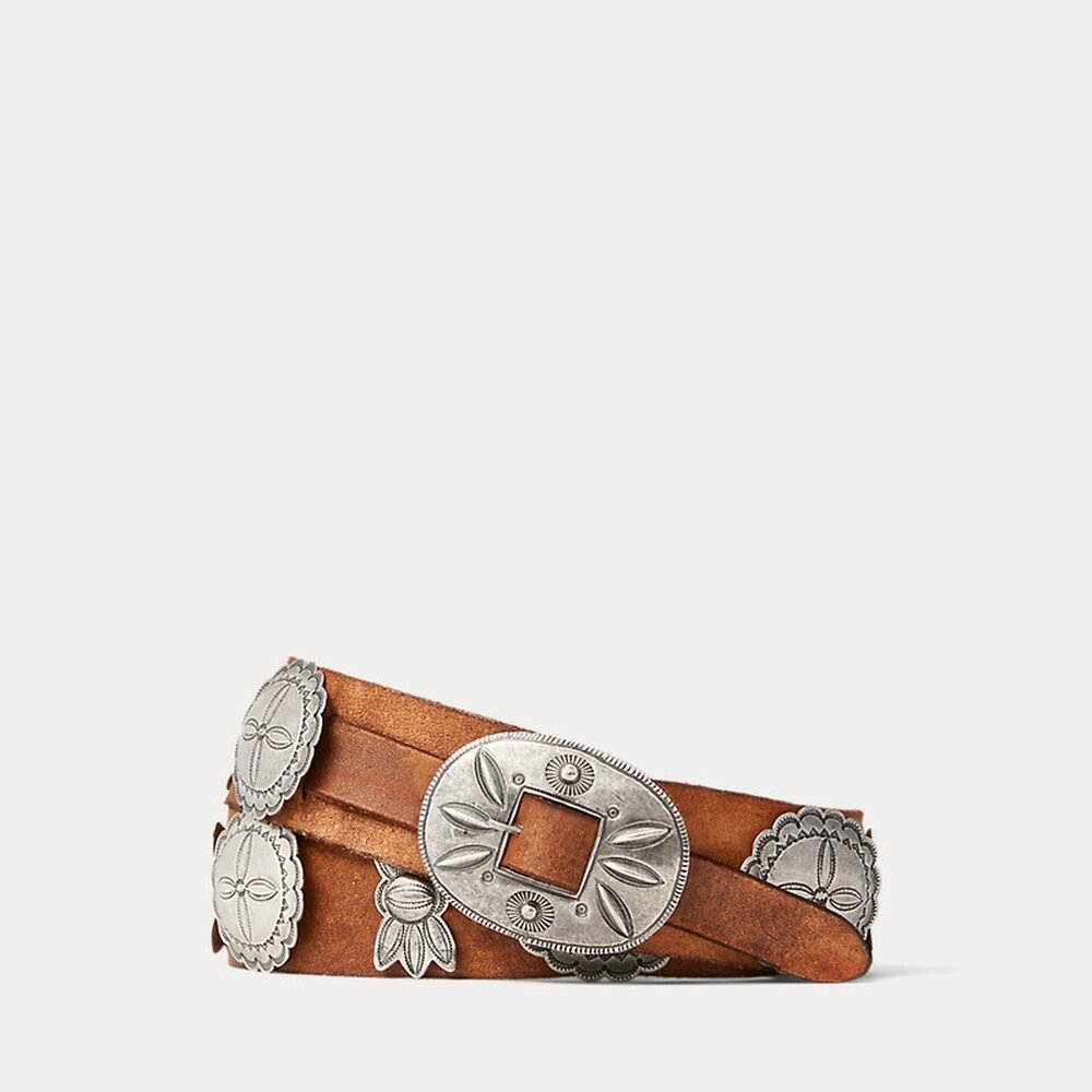 棕色皮革Concho模压腰带 男士 自营欧洲直邮Ralph Lauren拉夫劳伦