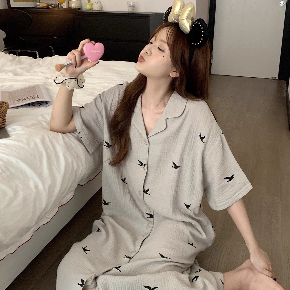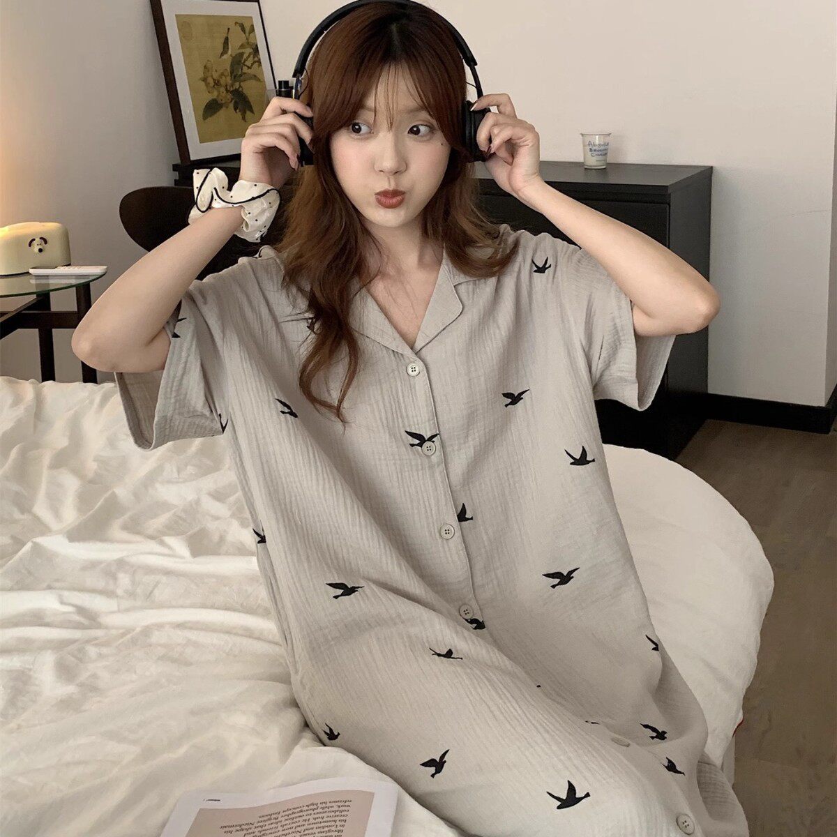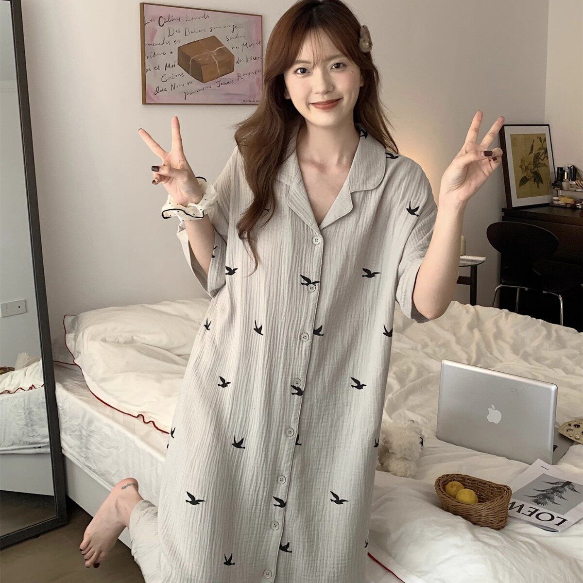可外穿衬衫 夏天2025新款 翻领设计睡衣ins家居服 睡裙女款 简约短袖