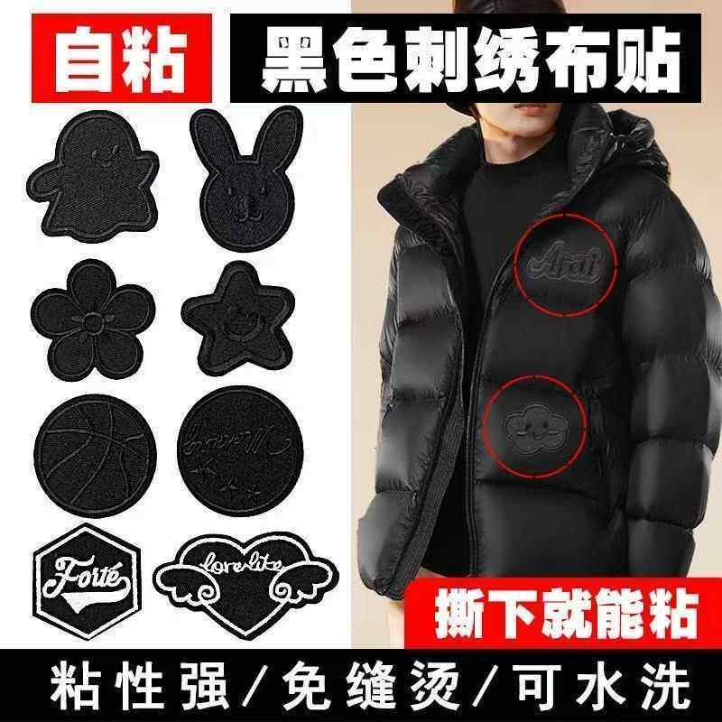 免缝黑色补丁贴自粘衣服皮衣专用刺绣贴布羽绒服破洞无痕修补布贴