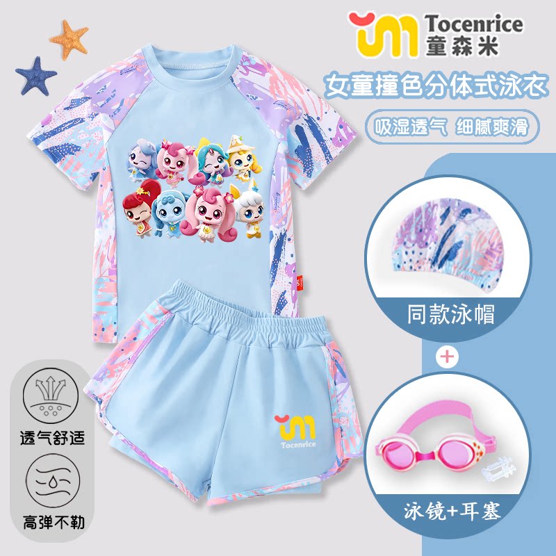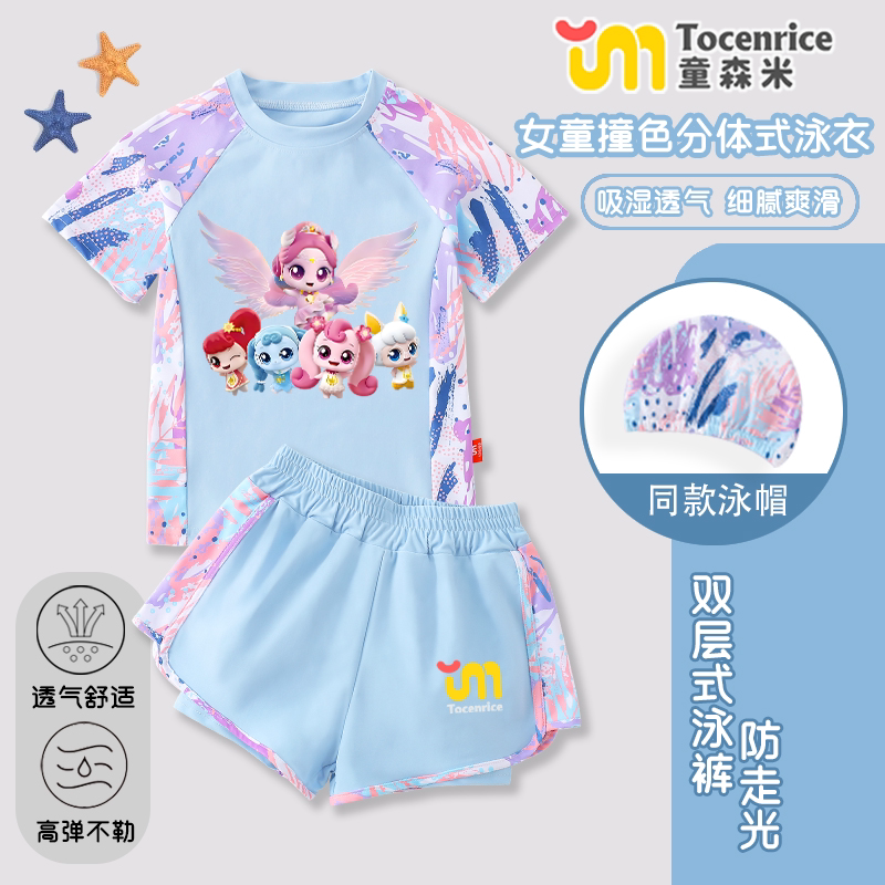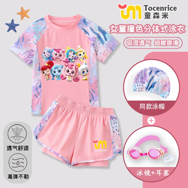 潮款 奇妙萌可爱心热情萌可女童泳衣女孩夏季 游泳衣中大童防晒泳装