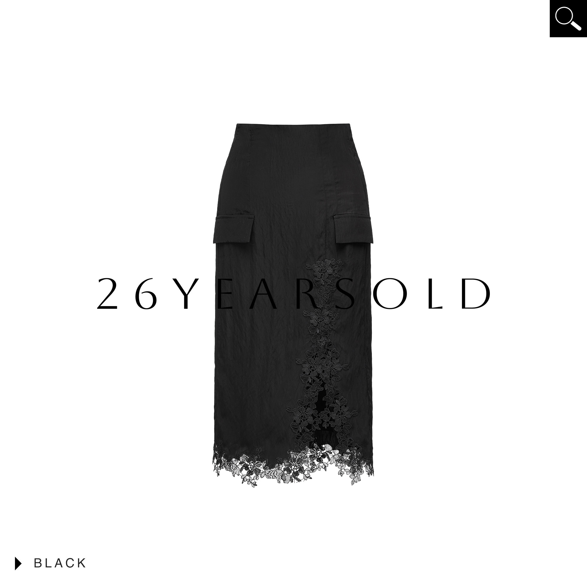 26YEARS 中长裙 OLD轻熟简约风黑色蕾丝半身裙女高腰包臀气质时尚