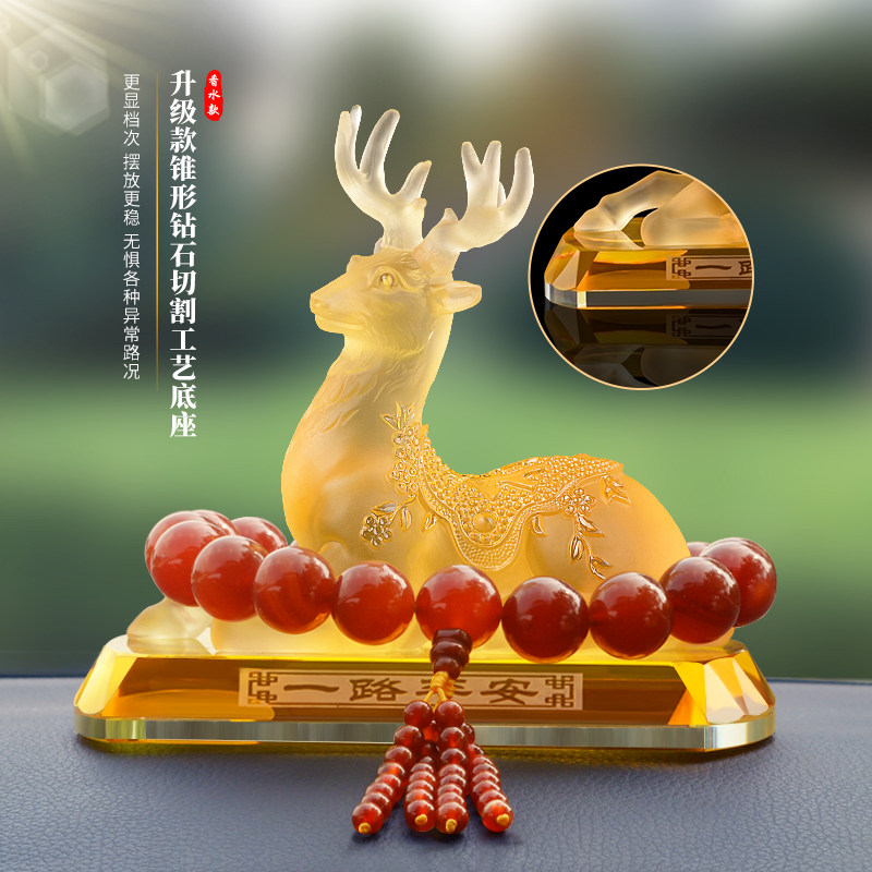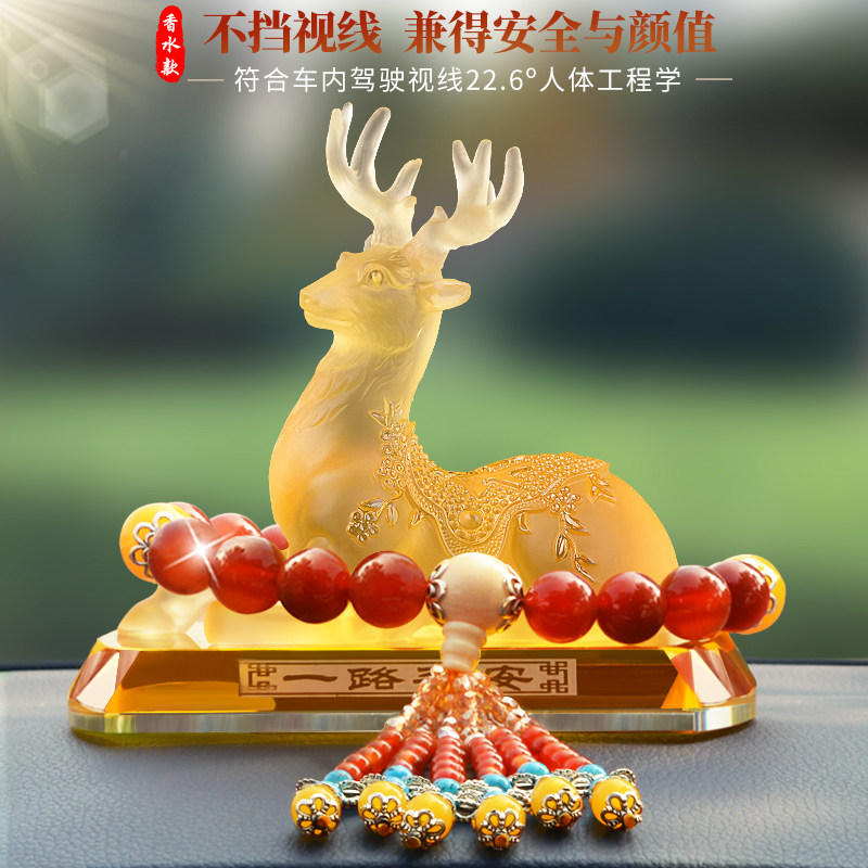 汽车摆件一路平安鹿高档车内饰品车载中控台香水座装 女 饰用品男士