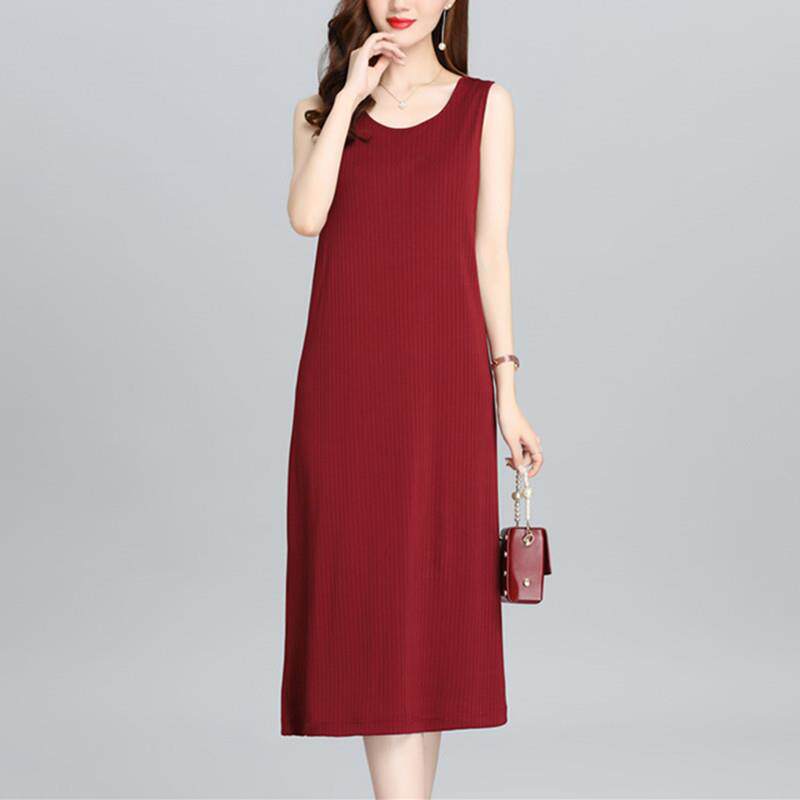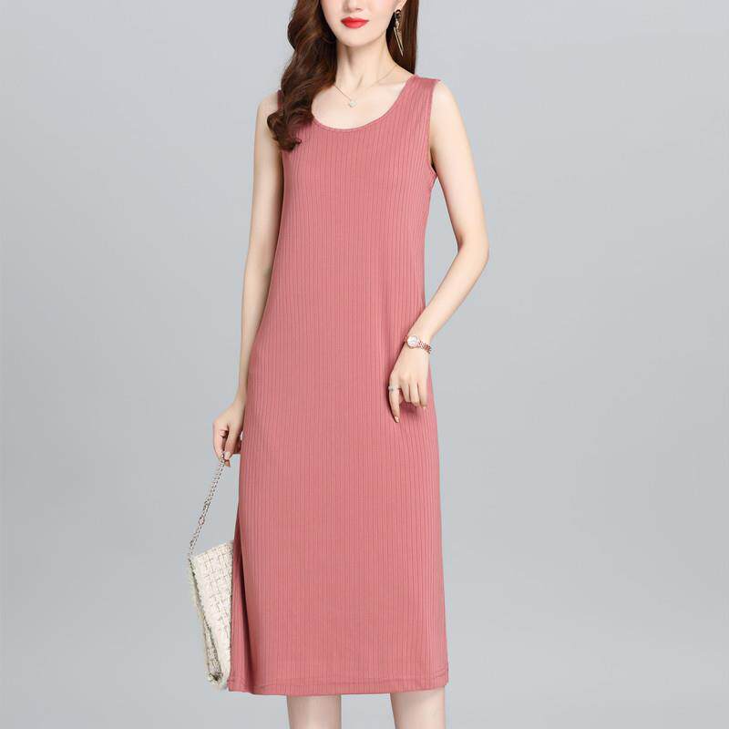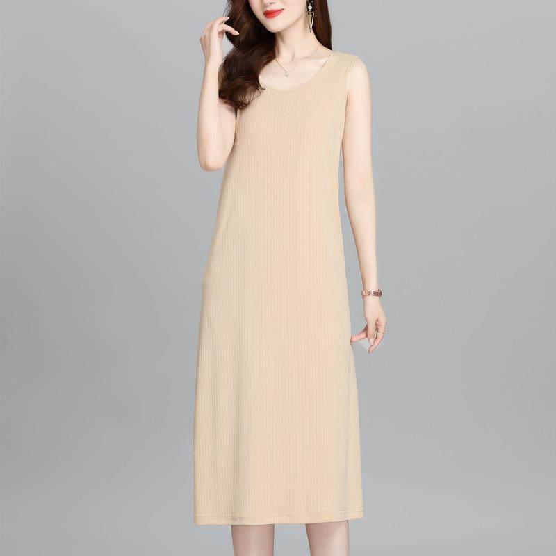 妈妈装 冰丝无袖 桑蚕丝洋装 宽松大尺码 吊带背心裙子 女中长版 夏季