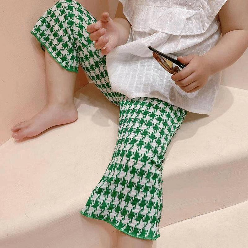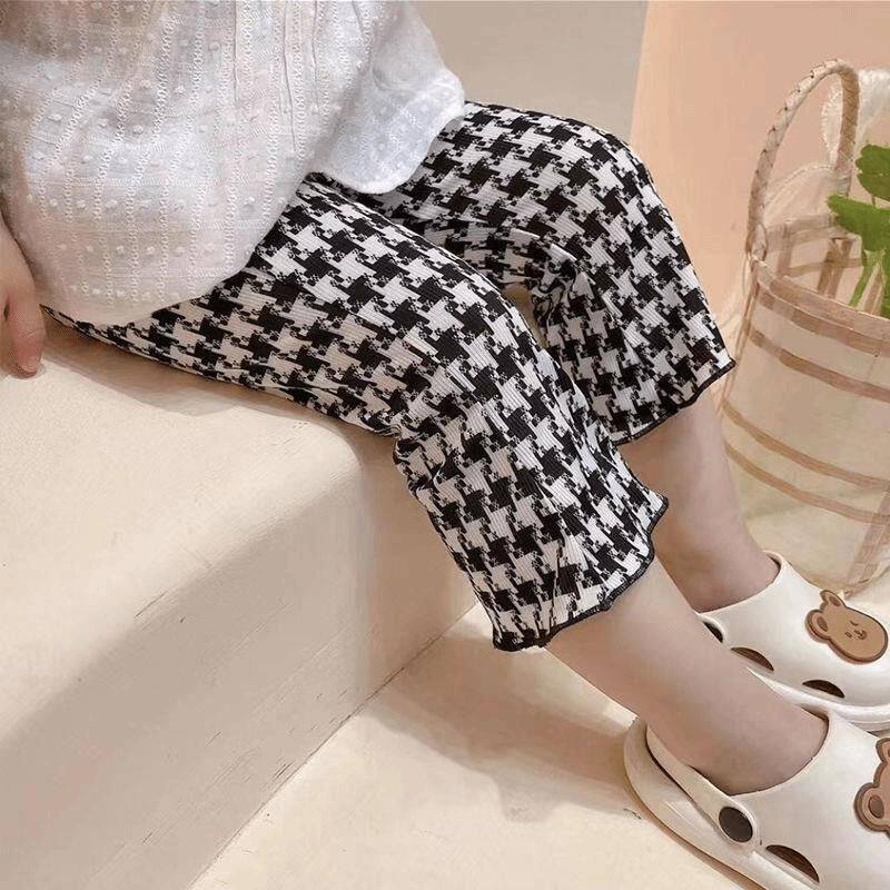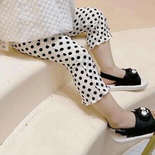 洋气韩版 子小童喇叭裤 女宝宝七分裤 儿童冰丝薄款 女童夏装 休闲裤 裤