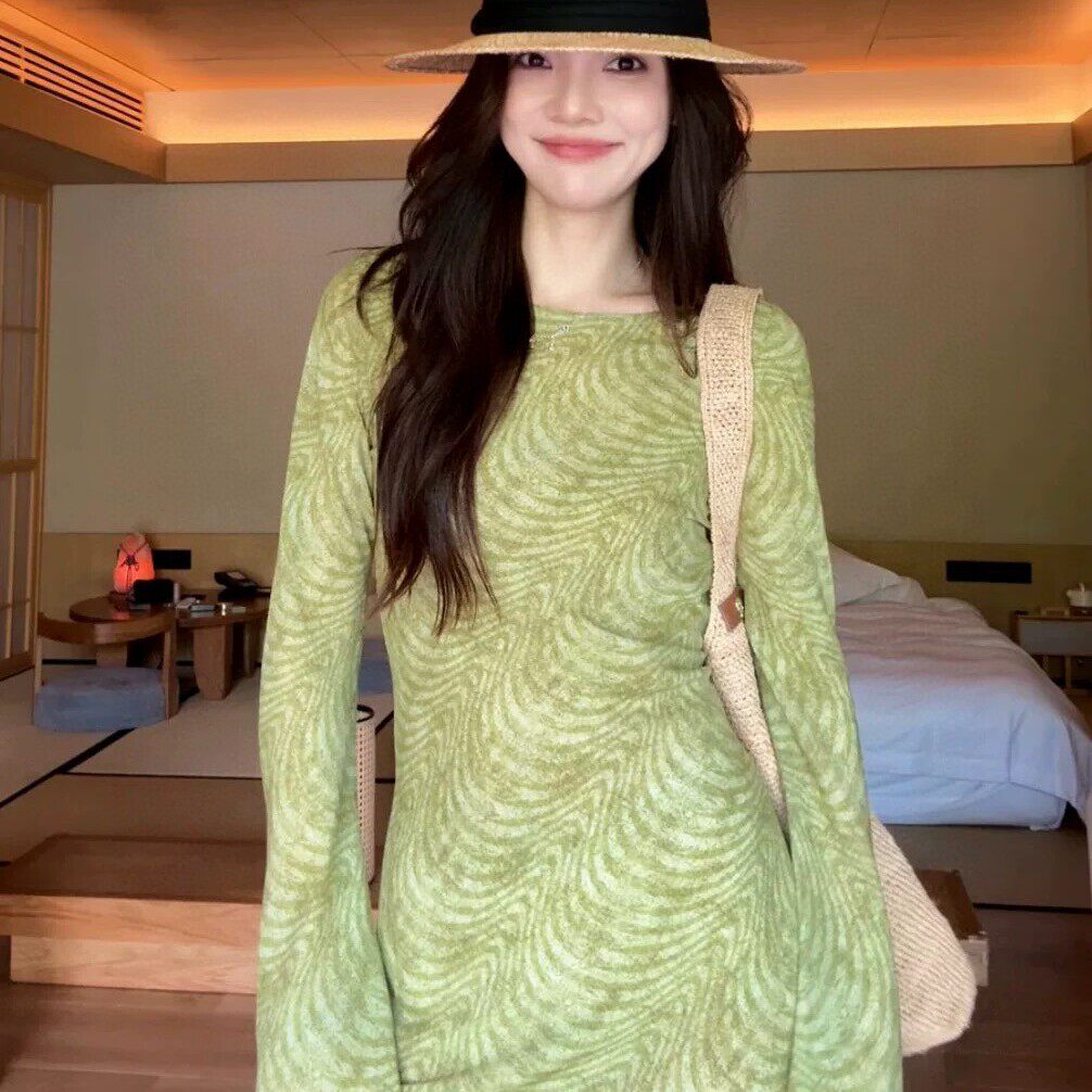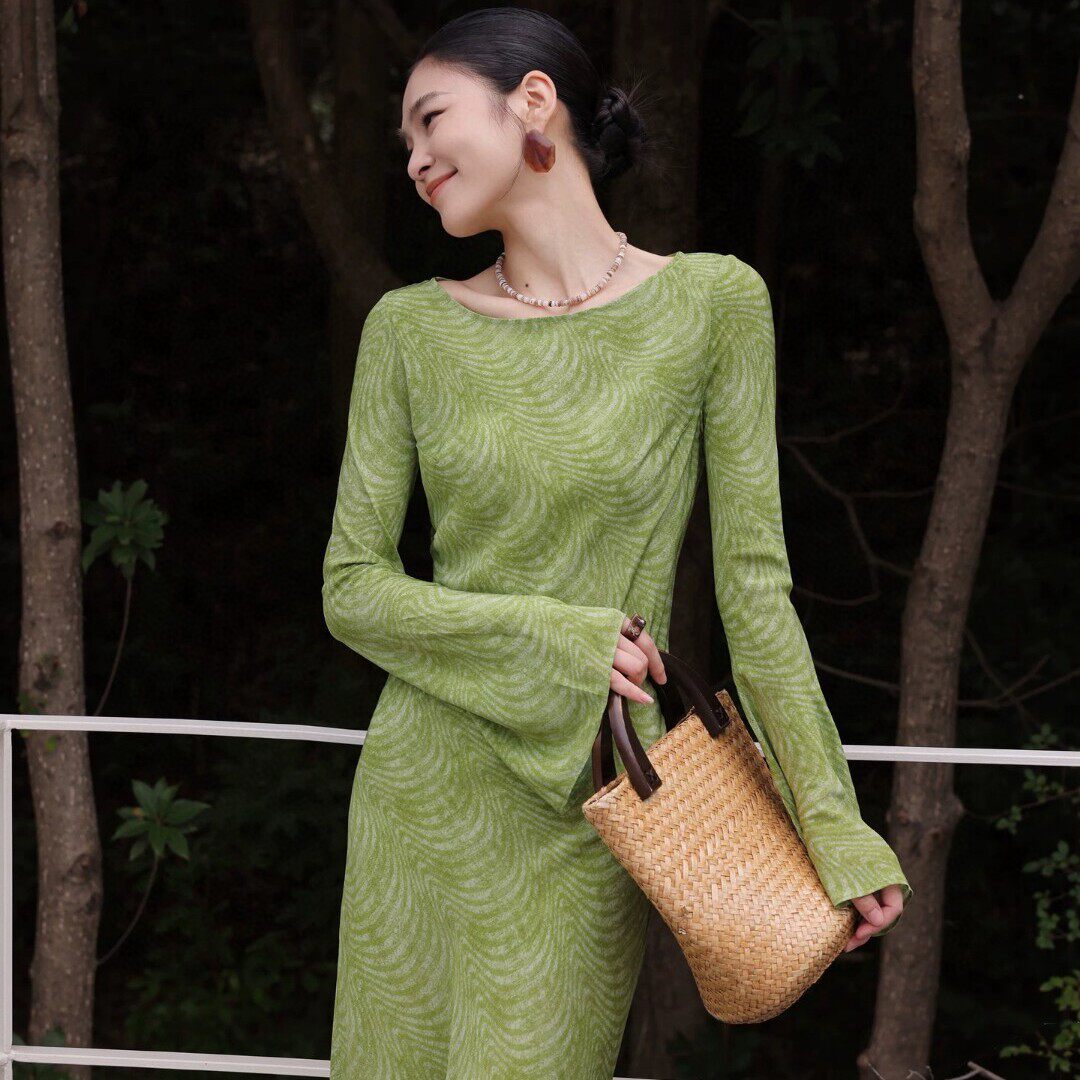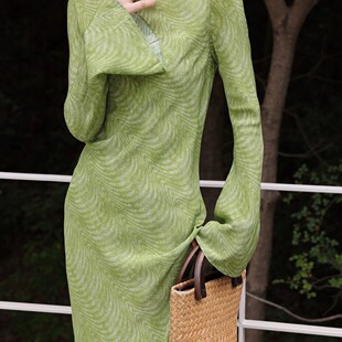 YS11 含100真丝 G307 连衣裙 馨菲家新真丝03双绉印花斜裁喇叭袖