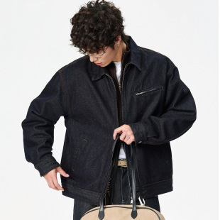 男宽松工装 新款 休闲夹克 复古翻领潮牌牛仔外套2026春秋季 美式